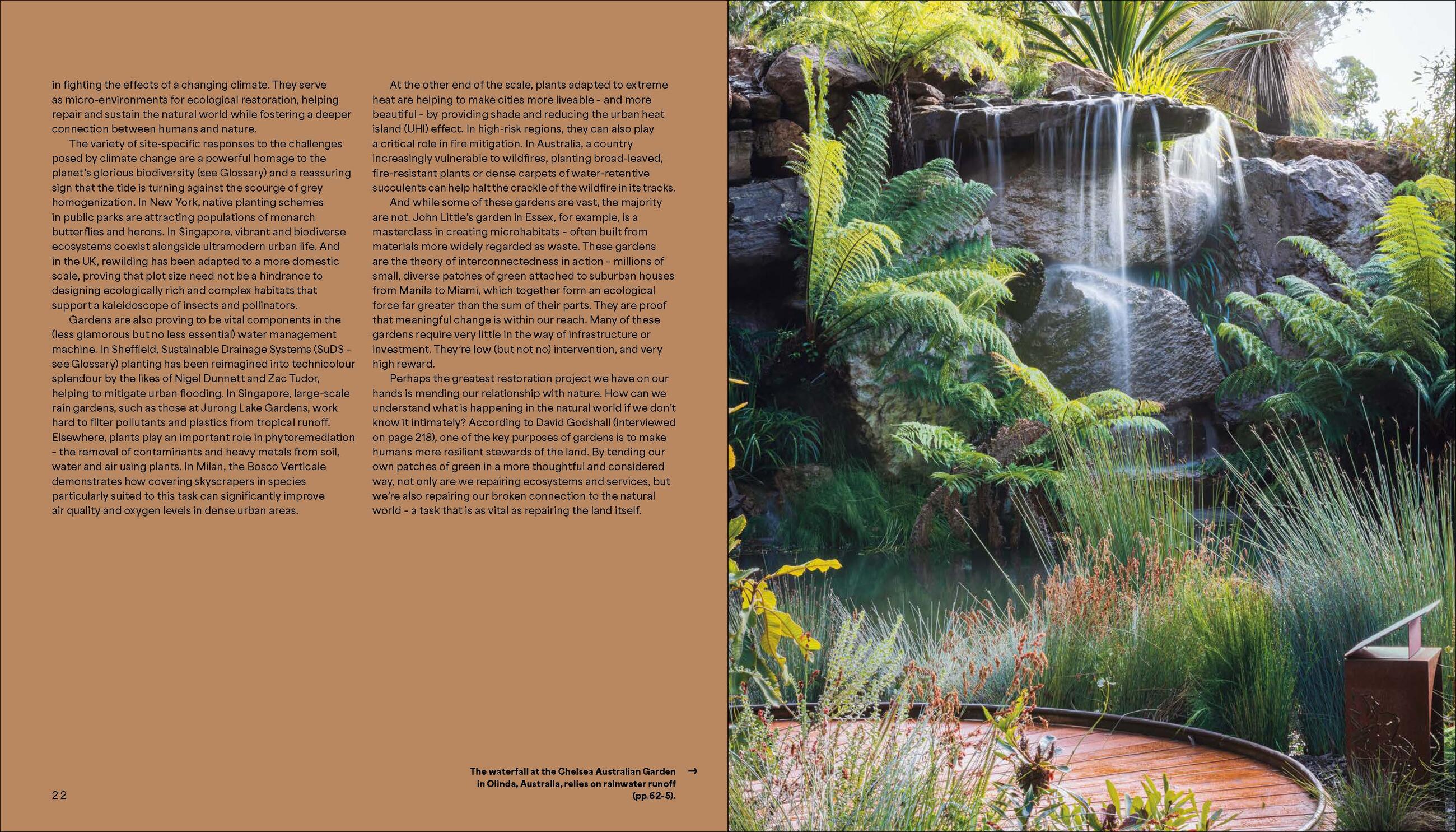 Gardens are the vanguard of positive change, modern-day crucibles for ideas and innovation that provide solutions to some of our most persistent problems, from loneliness and illness, to flooding and drought. Ecologically minded plant-people and pioneering gardeners around the world are harnessing the power of nature to find small-scale strategies to make powerful change. This is no longer just about aesthetics, but what nature-inspired gardens can do, whether that means save water, transform mental health, bridge social divides, educate children, or reimagine polluting industries.