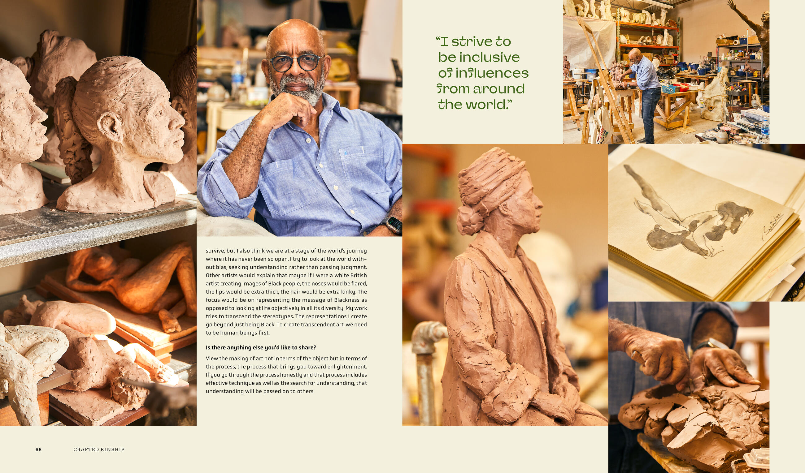Through powerful interviews with more than 60 artists and designers of Caribbean heritage, accompanied by gorgeous photographs, Crafted Kinship takes readers on a unique journey through the world of Black Caribbean creativity. Each maker crafts a kinship with the land, the people, the culture of their country of origin. Their art explores and reflects deeply on themes like African origins, ancestors, Black womanhood/Black manhood, identity, joy, memory, and the complicated and painful history of migration and diaspora. An art that is more often than not multidisciplinary, created by makers who eschew traditional labels by reshaping the boundaries around art and design.