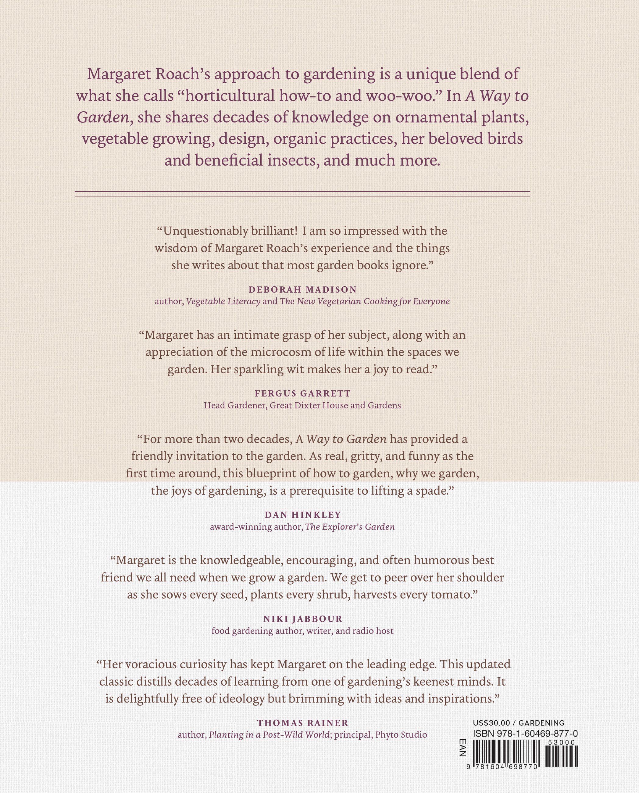 “Unquestionably brilliant! I am so impressed with the wisdom of Margaret Roach’s experience and the things she writes about that most garden books ignore.” B>Deborah Madison, author of Vegetable Literacy and The New Vegetarian Cooking for Everyone