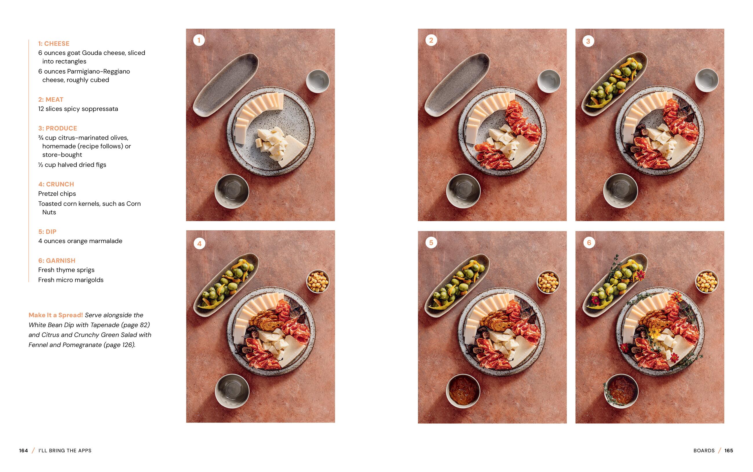 You’ll find recipes for Bites, such as Summer Shrimp Cups and Savory Jammy Onion Toasts; Bowls, like Tarragon Egg Salad and Sweet and Spicy Whipped Brie; Boards (obviously) that go well beyond Marissa’s signature, including the Salumi Pinwheel Platter and Truffle Cheddar Breakfast Quesadillas; and, of course, Beverages to round it all out—Dark Chocolate Tequila Espresso Martini, anybody?