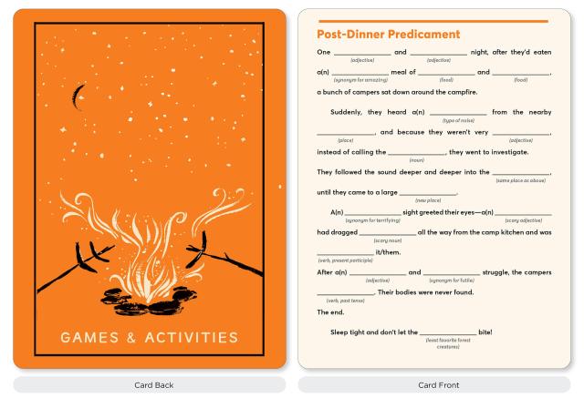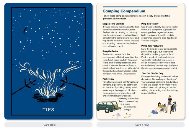 This deck has been adapted from The Campout Cookbook (Artisan, 2018).