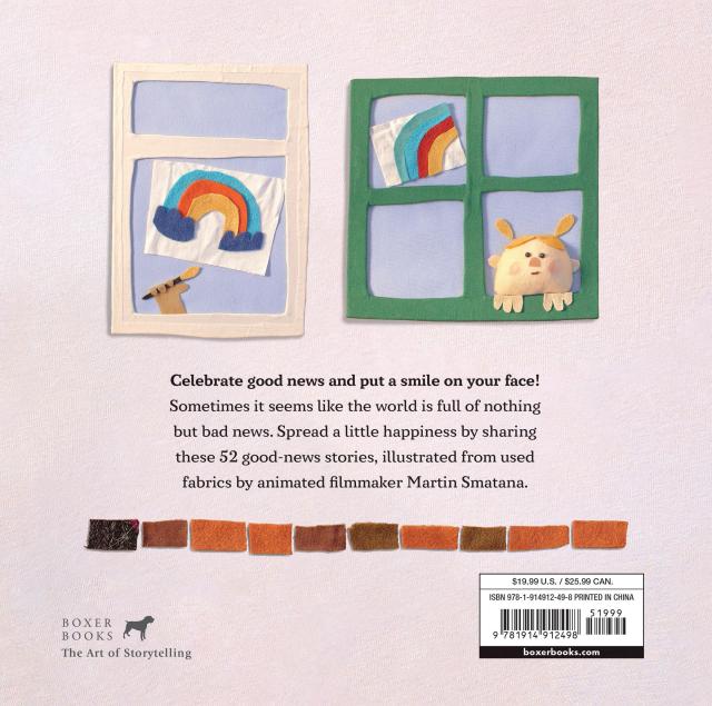 Fans of positive news shows like Some Good News with John Krasinski will find similarly cheerful and comforting content in this book, while readers of all ages who enjoyed the unique fabric art illustrations of Salley Mavor or the Cozy Classics series will appreciate Martin Smatana’s art made from upcycled scraps of cloth.