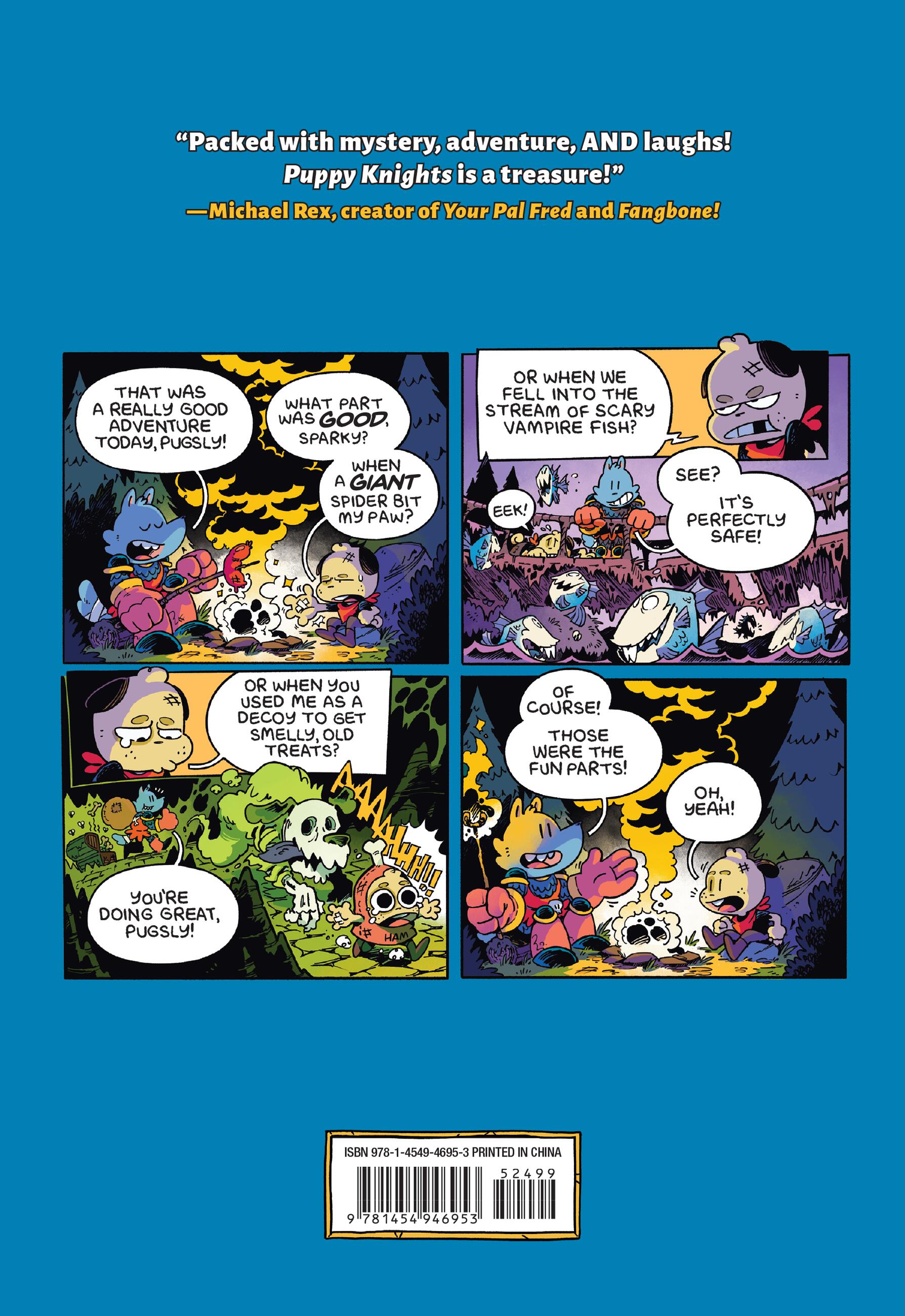 Adventurers Sparky and Pugsly have been hired by the prince of the kingdom of New Pawston to find its most precious treasure, the Golden Bones. They aren’t the sharpest dogs, but they make up for it with a lot of energy and enthusiasm! Unafraid and unaware, their search sends them from one peril to another—going up against brigands, a secret society of cats, a snobby hotel clerk, and the deepening mystery of the prince’s true intentions. All the while, the two remain constant companions, their friendship and their understanding of the world growing as they move through it.