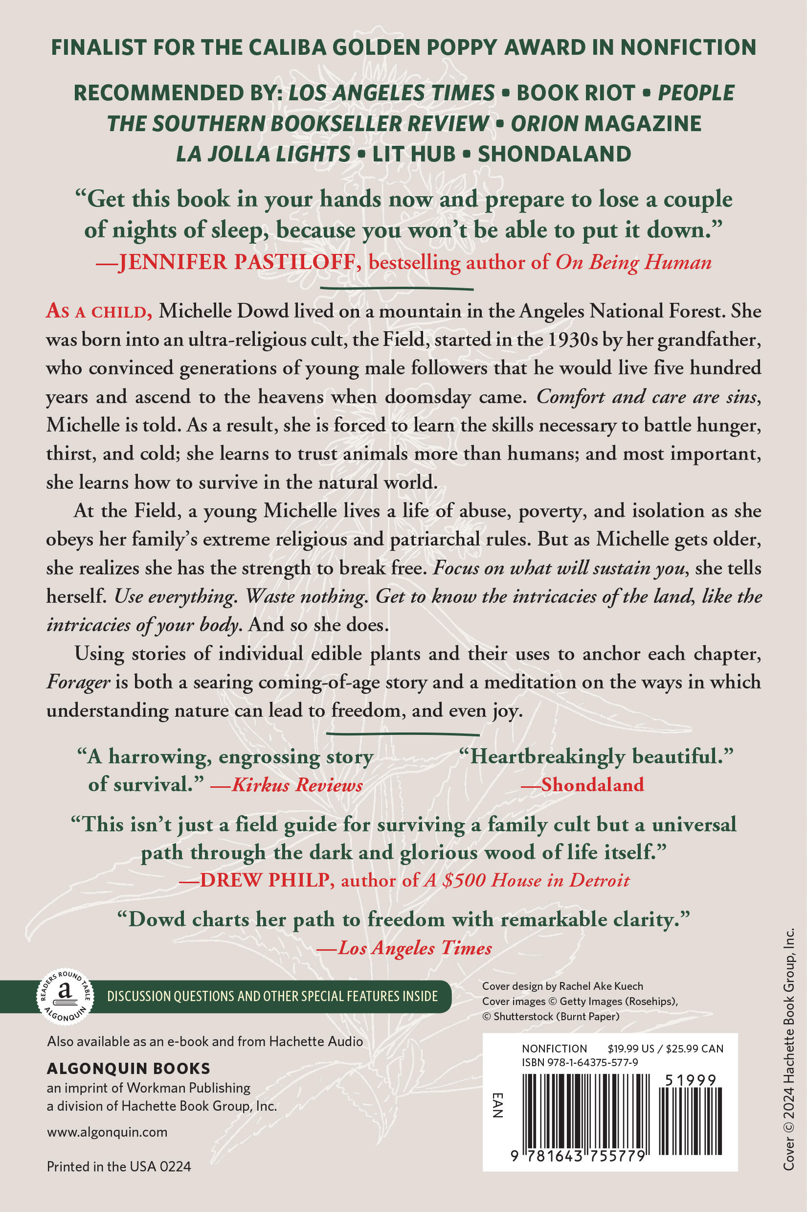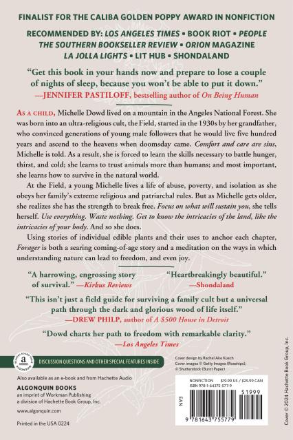 “A harrowing, engrossing story of survival amid painful circumstances… Heartbreaking and difficult to put down, this book lyrically chronicles an impressive rise out of illness, poverty, and indoctrination… enthralling.”Kirkus Reviews "Beautifully delicate illustrations and foraging tips also keep things bright. An inspiring and insightful tale of resilience in the face of adversity, this book is hard to put down.”—Booklist "Listen to me: get this book in your hands now and prepare to lose a couple nights of sleep because you won’t be able to put it down. Michelle Dowd indeed had a chilling childhood, but that’s not what will keep you turning these pages. It’s the lyricism of language and complex characters you can’t stop thinking about it. For anyone who’s ever felt lost, this book is for you. For anyone who’s ever loved, this book is for you. For anyone who has yearned to understand where they fit in the natural world, this is your guidebook."—Jennifer Pastiloff, bestselling author of On Being Human "On the surface, Forager is about dramatic circumstances most of us will never experience--growing up inside a doomsday cult. This unusual lens, however, also mirrors more universal questions, such as how to build meaning out of trauma, how to tell the stories of our lives even as those lives intersect with others', how nature is a healing force even as we participate in its destruction. Michelle Dowd takes on the real, sticky, human issues without easy answers or platitudes and with a voice that is fully her own."—Gina Frangello, author of Blow Your House Down "Dazzling in depth, chilling in its revelations, Michelle Dowd’s memoir of a cult childhood proves how a life designed to be holy often turns evil. Dowd forages childhood experiences in an effort to come to terms with a family’s errant divinity—a fanaticism that leads to religious violence. What saves her, ultimately, is her biblical relationship with the natural world. Expansive in scope, brilliant in its undertaking, Dowd sifts through a wreckage of memory to create a survival guide for the apocalyptic brutality of Christian extremism."—Janisse Ray, author of Ecology of a Cracker Childhood "Michelle Dowd's bounty of a memoir offers us not just a survival guide, but the most ingenious map for sustenance in both body and spirit during dark times. In a world that prefers singular goals and simple answers, Forager finds power and joy in sharp-eyed, keen-fingered wandering, and its vertiginous complexities will sustain you for years to come."—Meredith Talusan, author of Fairest: A Memoir "No matter who you are or where you’re from, Dowd will guide you by the hand into her beautiful and heartbreaking family forest to show with heroic vulnerability how you might glean life from both the flowers and the thorns of her own. This isn’t just a field guide for surviving a family cult, but a universal path through the dark and glorious wood of life itself. Forager is a forest in bloom, a stream on a sweltering day, a Polaris of hope, a masterpiece of storytelling and empathy. And when you step into the sunlight on the other side of this magnificent book, Dowd will have freed you right alongside herself."—Drew Philp, author of A $500 House in Detroit