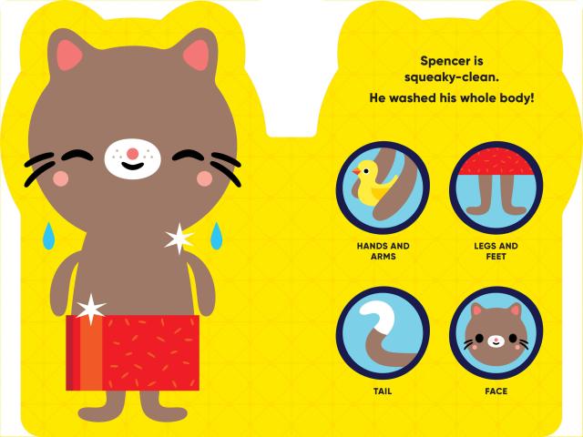 Here are Spencer’s pajamas and rubber duckie, toothbrush and a kiss good night. Get ready for bed with your new friend Spencer and learn all the words in his world!