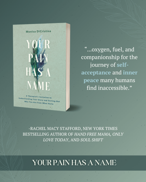 “Your Pain Has a Name is oxygen, fuel, and companionship for the journey of self-acceptance and inner peace many humans find inaccessible. In a stunningly vulnerable way, Monica DiCristina walks alongside us, inviting us to investigate our past stories and build new, healthier paths forward. With her uncanny ability to convey difficult concepts through simple, relatable examples, Monica offers liberation from the false narratives that limit our ability to live life to the fullest. This book is a gift of love.”Rachel Macy Stafford, New York Times bestselling author of Hands Free Mama, Only Love Today, and Soul Shift