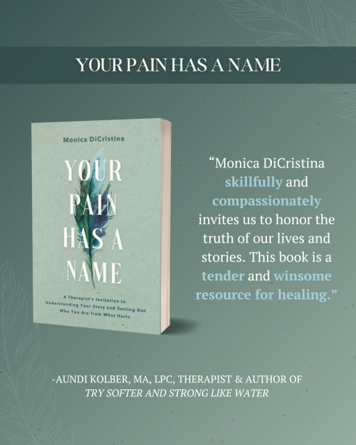 “In Your Pain Has a Name, Monica DiCristina becomes a gentle companion to weary hearts, offering calm, comfort, and compassion. Her storytelling is approachable and wise—affirming our pain while leading us toward wholeness. Drawing on her years as a therapist, Monica puts words to the deep hurts we carry and guides us on a path toward healing. If you’re wondering if this book is for you… it is.”Kayla Craig, author Every Season Sacred and To Light Their Way, creator of Liturgies for Parents