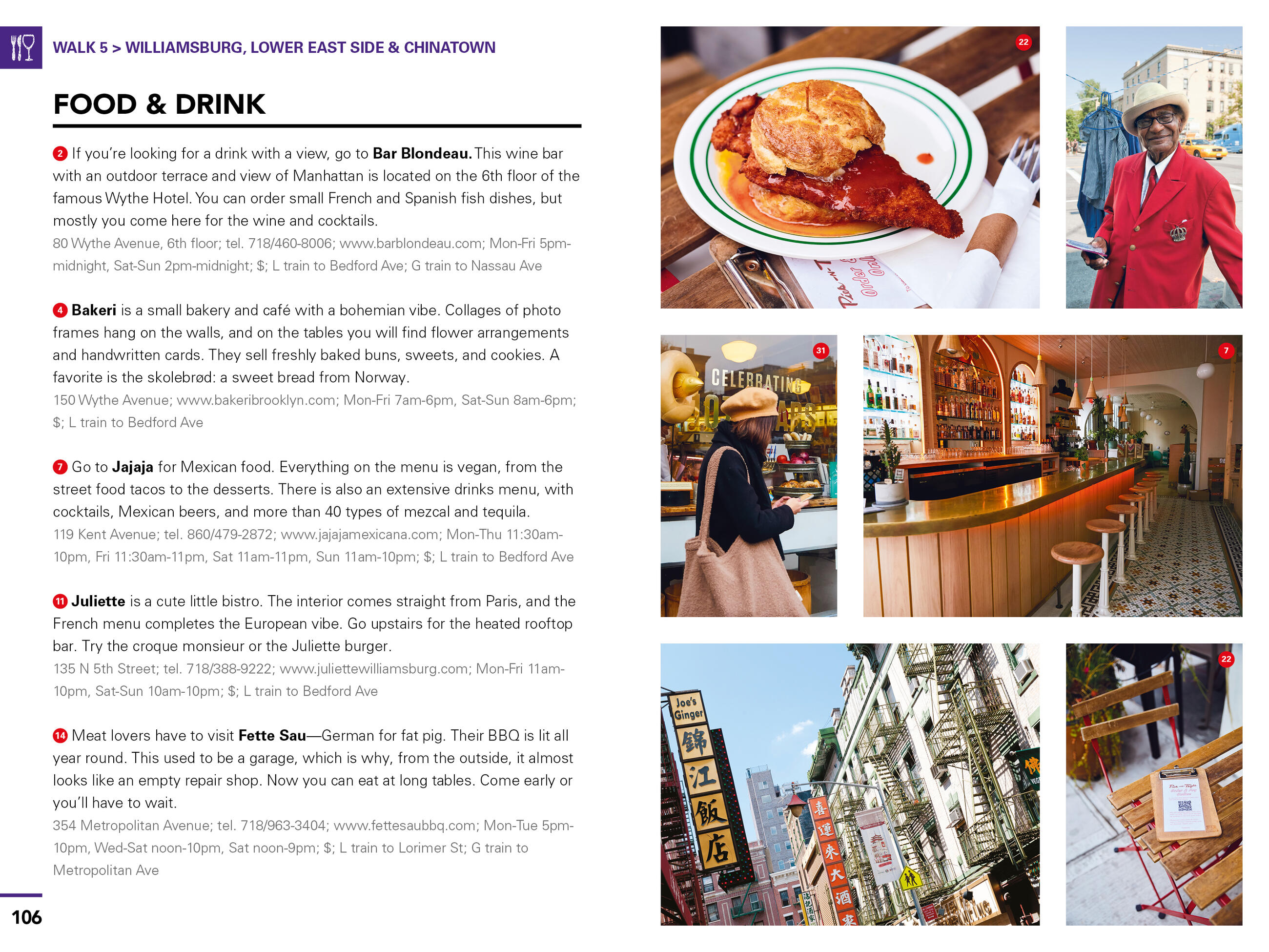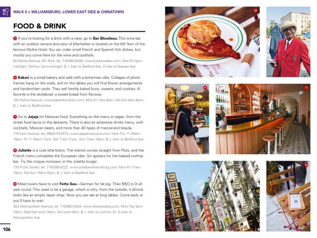 - Walk through the city’s coolest neighborhoods, including Soho, the West Village, the Lower East Side, Williamsburg, and more, with color-coded stops and turn-by-turn directions