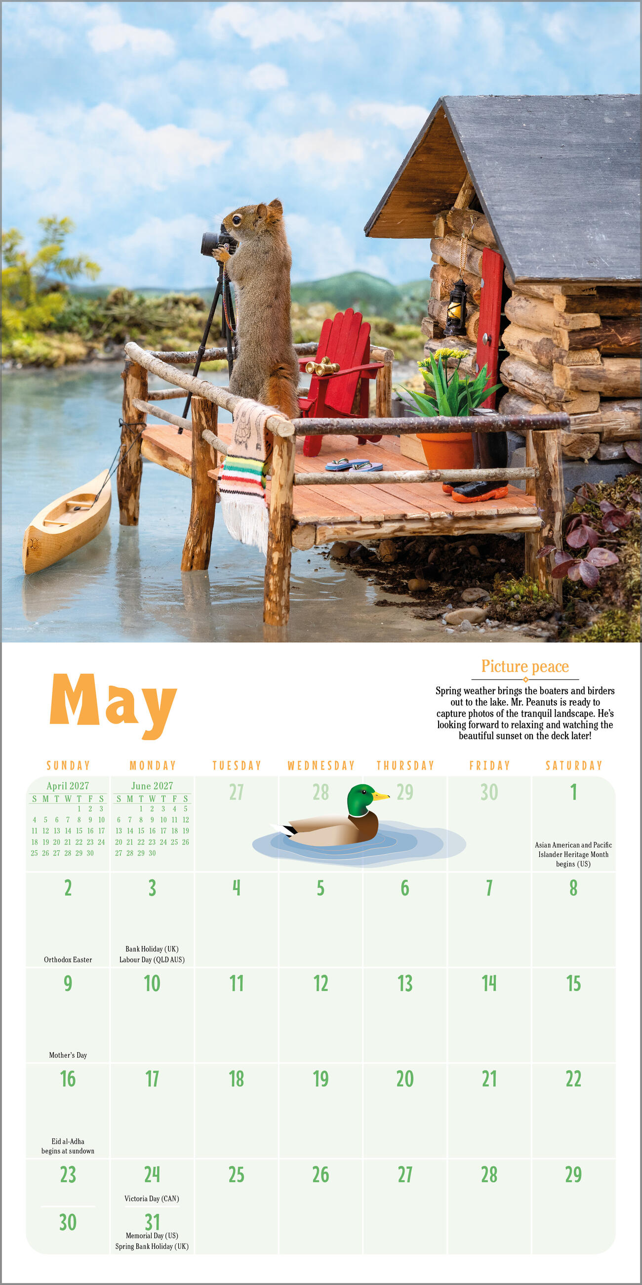 - IT’S A SQUIRREL’S WORLD: Each month features a precious photo of real squirrels playing chess, picnicking, and getting up to more fun with these amazing (not photoshopped!) photos from Nancy Rose.