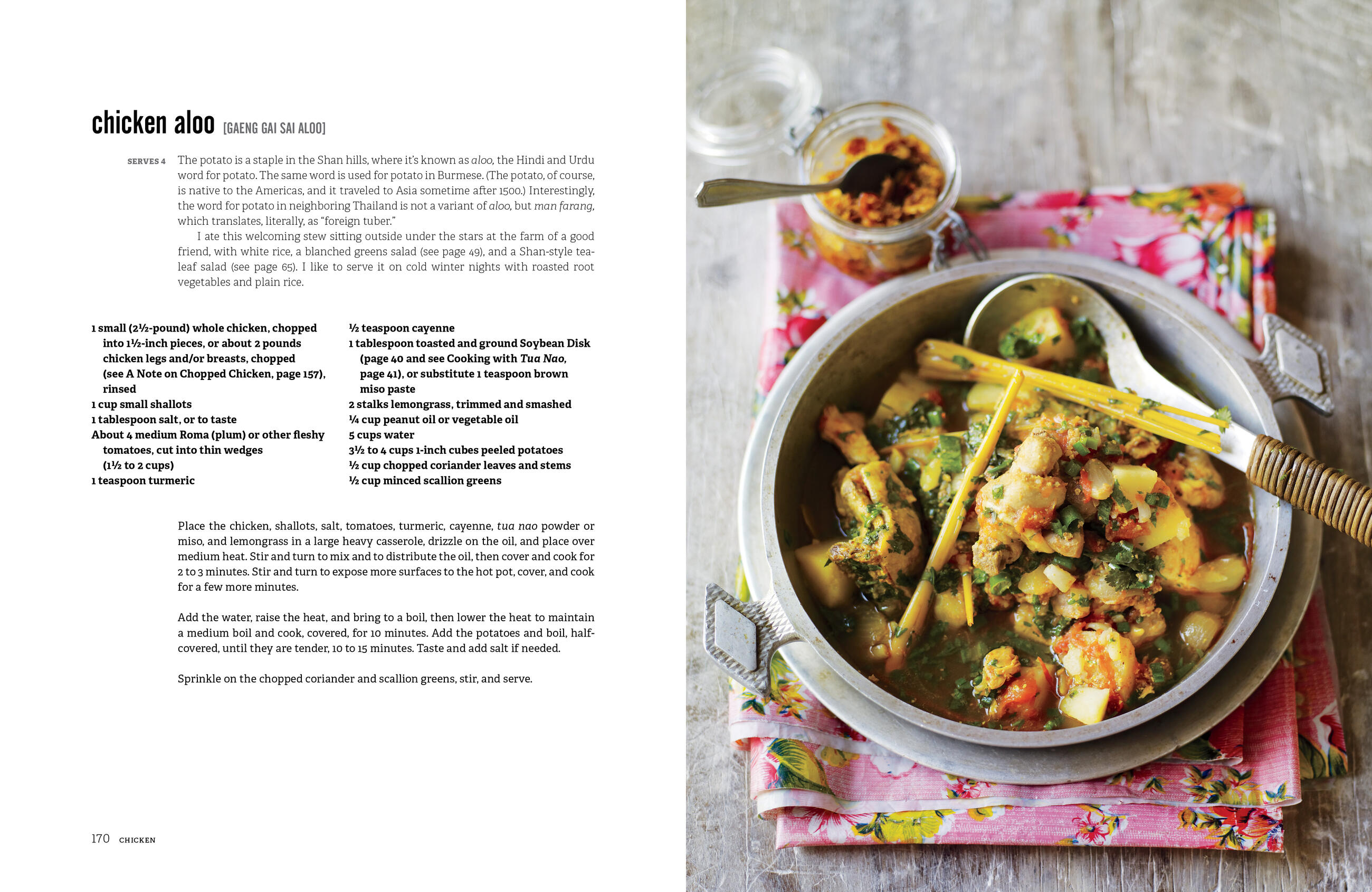 Tasty sauces, chutneys, and relishes—essential elements of Burmese cuisine—will become mainstays in your kitchen, as will a chicken roasted with potatoes, turmeric, and lemongrass; a seafood noodle stir-fry with shrimp and mussels; Shan khaut swei, an astonishing noodle dish made with pea tendrils and pork; a hearty chicken-rice soup seasoned with ginger and soy sauce; and a breathtakingly simple dessert composed of just sticky rice, coconut, and palm sugar.