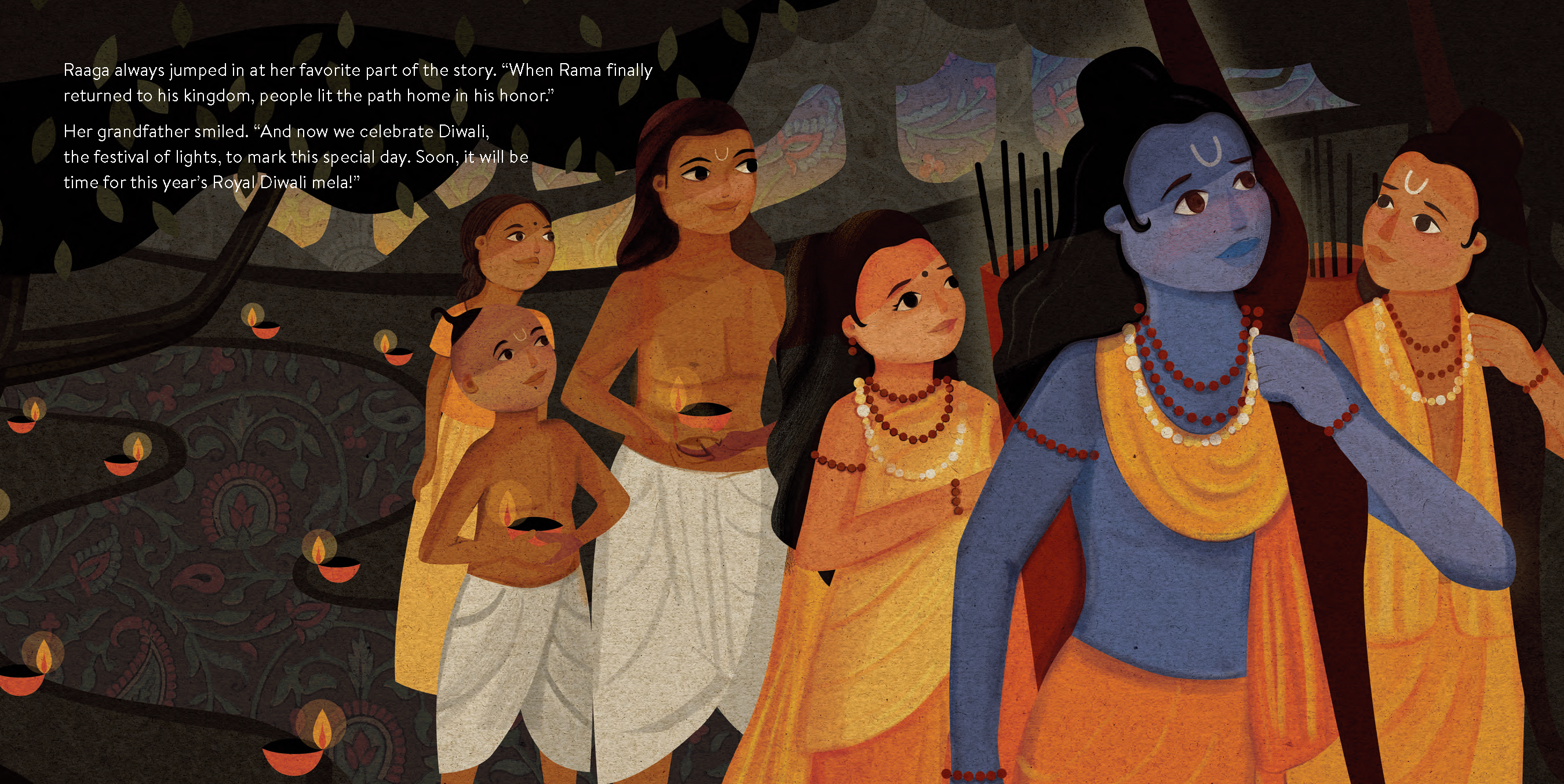 Raaga has always dreamed of singing at the annual Diwali mela at the Royal Place. Ever since she was a little girl, her grandfather would tell her the story of how Lord Rama and his army slew the ten-headed demon Ravana (the story for which Diwali is celebrated today). While young Raaga has always suffered from stage fright, the more Raaga practices with her grandfather, the larger her audience grows, like her own little army.