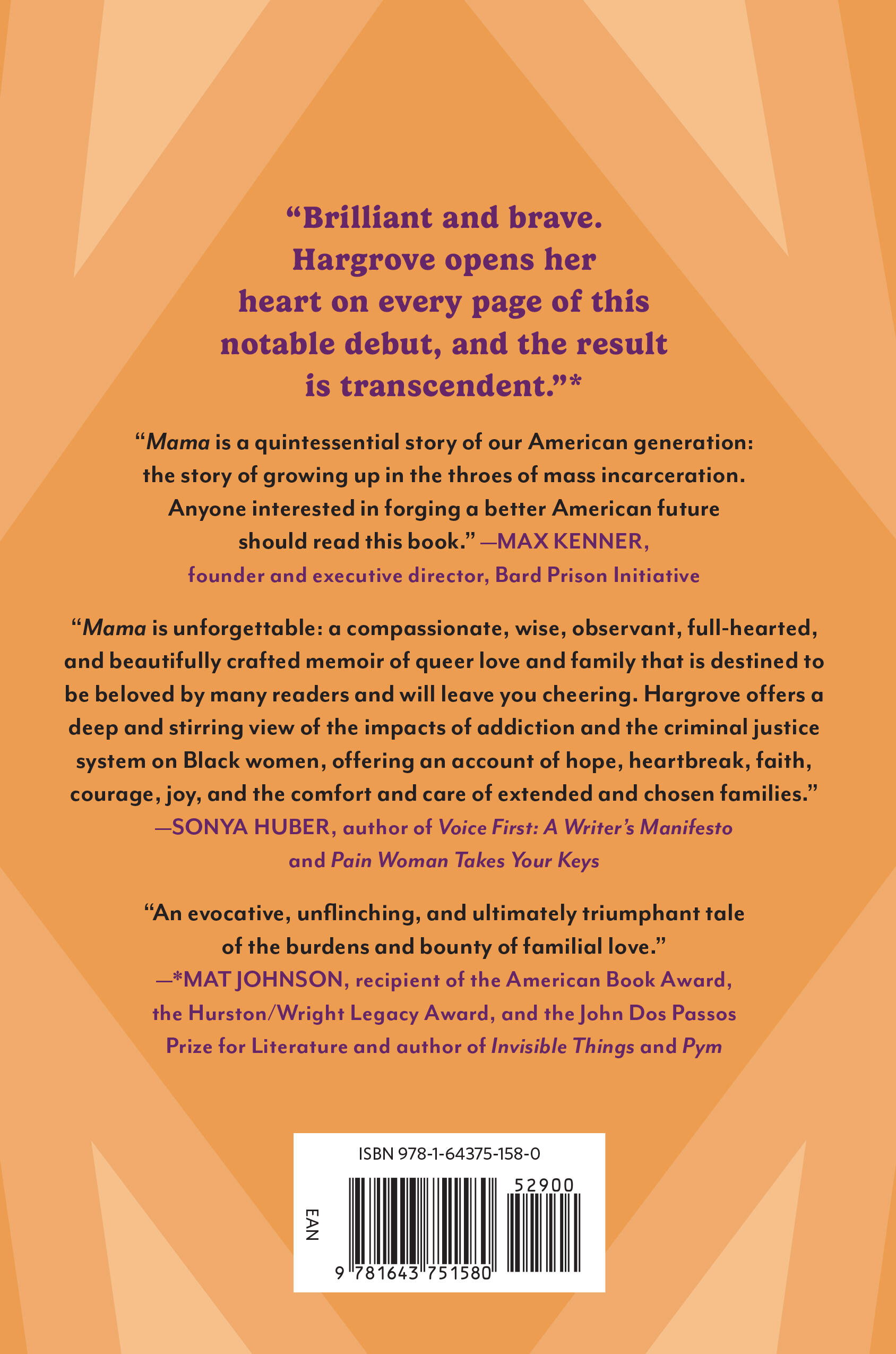 “Mama is an evocative, unflinching, and ultimately triumphant tale of the burdens and bounty of familial love. Both brilliant and brave, Hargrove opens her heart on every page of this notable debut, and the result is transcendent.”Mat Johnson, author of Invisible Things and Pym