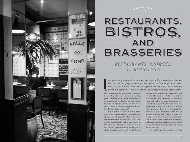 In 457 entries—345 new to this edition, plus 112 revisited and reviewed classics—The Food Lover’s Guide to Paris offers an elegantly written go-to guide to the very best restaurants, cafés, wine bars, and bistros in Paris, as well as where to find the flakiest croissants, earthiest charcuteries, sublimest cheese, most ethereal macarons, and impeccable outdoor markets. The genius of the book is Ms. Wells’s meritocratic spirit. Whether you’re looking for a before-you-die Michelin three-star experience (Guy Savoy, perhaps, or Restaurant Alain Ducasse au Plaza Athénée) or wanting to sample the new bistronomy (Bistrot Paul Bert, Le Comptoir du Relais) or craving something simple and perfect (L’As du Fallafel, or Breizh Café for crêpes), Patricia Wells tells you exactly where to go and why you should go there. You no longer have to rely on the iffy “reviews” of Yelp or Trip Advisor.