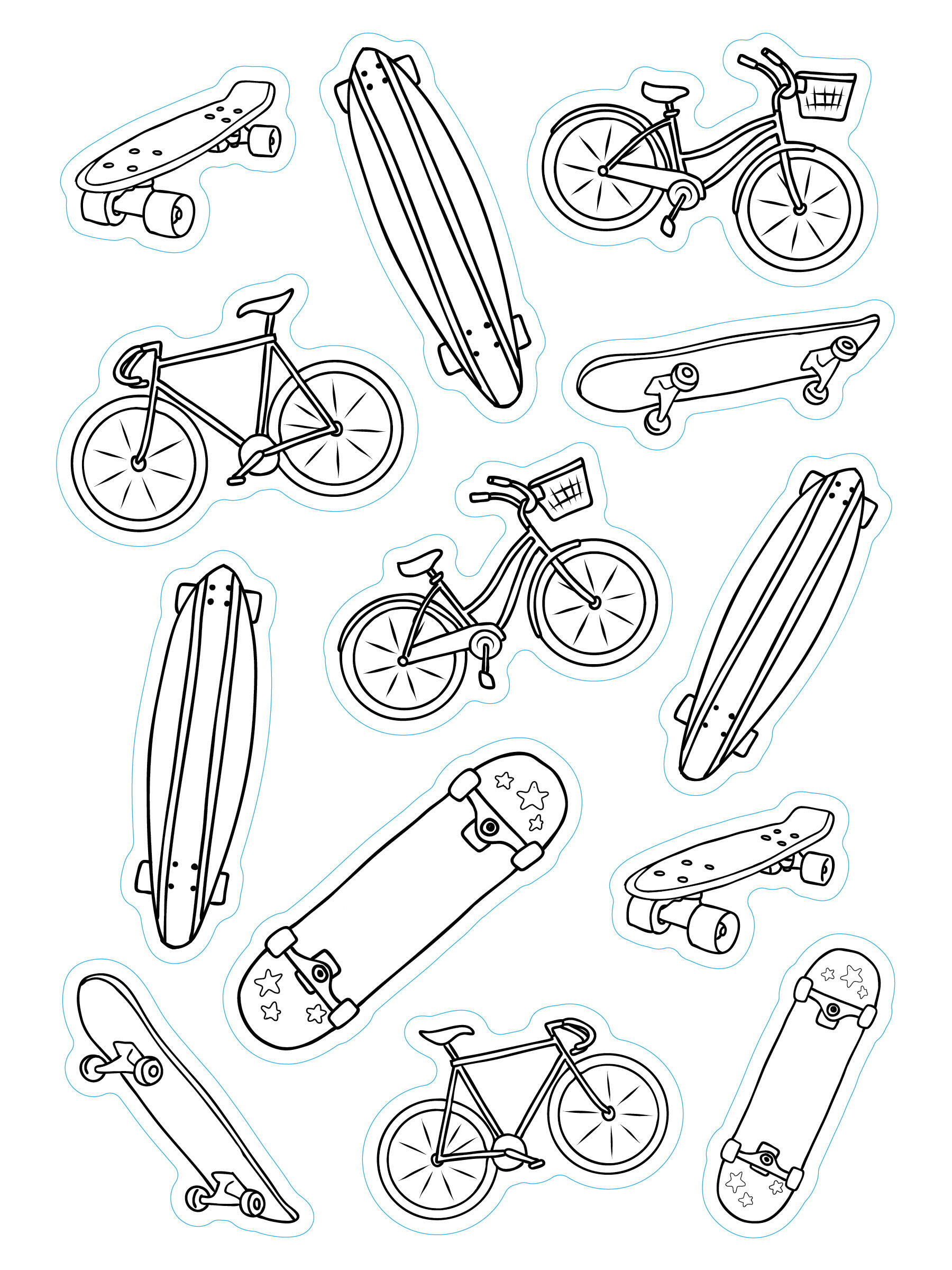 Combine the fun of stickers with the creativity of making them your own. Draw, bedazzle, and transform black-and-white designs into one-of-a-kind pieces of art with markers, colored pencils, or crayons.