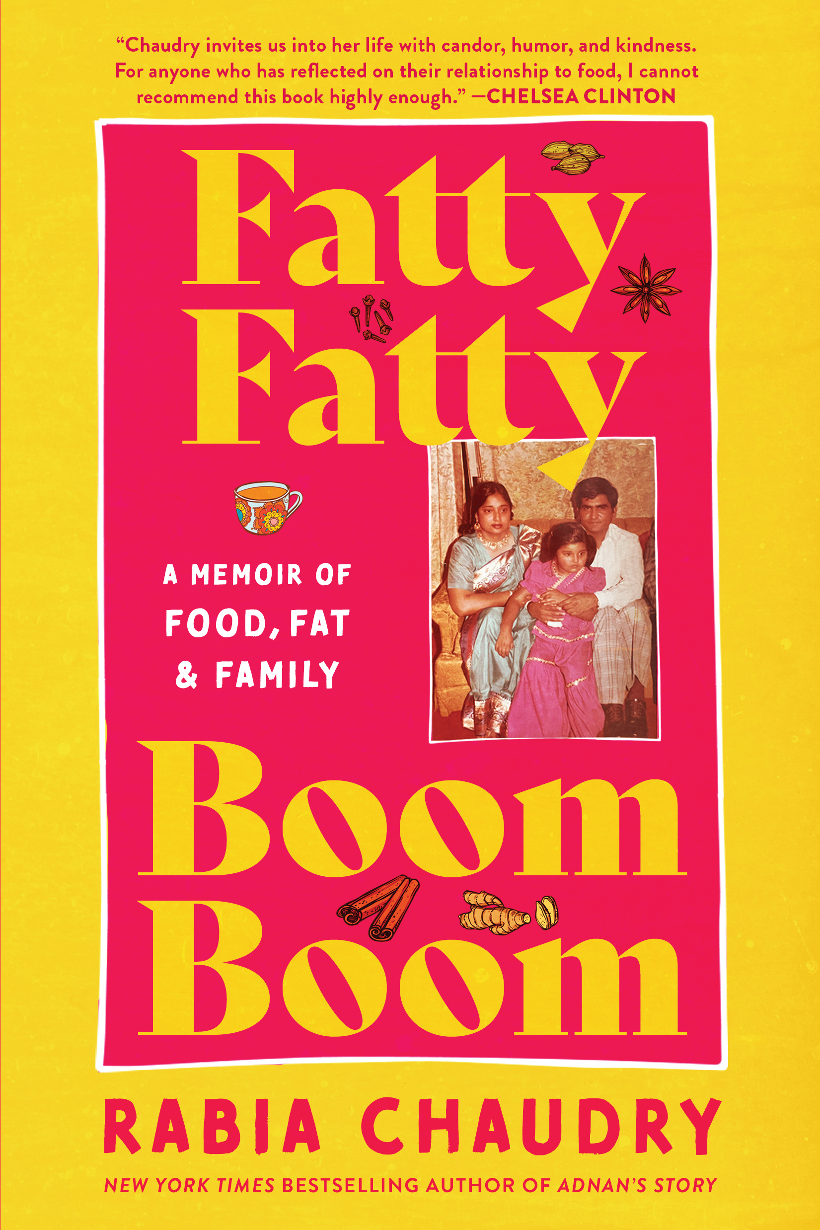 “Yes, Fatty Fatty Boom Boom is a book about food and Rabia’s relationship to food, how that relationship influenced her life and how she ultimately, as she says, becomes friends with her body. It’s also a profound act of generosity as Rabia invites us into her life with candor, humor, and kindness, for herself, her family and anyone who has reflected on their relationship to food. Not incidentally, it’s a terrific read and one you can appropriately plow through or savor. I cannot recommend Fatty Fatty Boom Boom highly enough. I can’t wait for my friends to read Rabia’s story, for my kids to try Rabia’s recipes and for the world to know more about this remarkable woman.”Chelsea Clinton