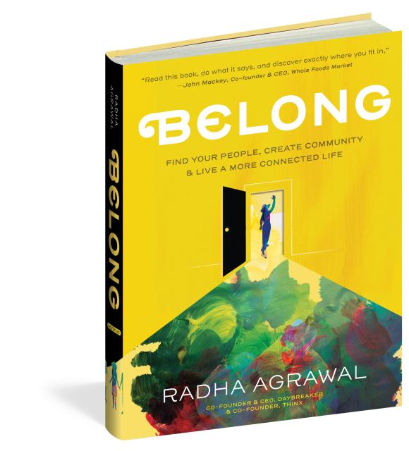 Radha Agrawal is at the center of building one of the most important movements in America: the creation of deep community among a population of increasingly disconnected citizens. Belong takes the powerful lessons she’s learned through her remarkable entrepreneurial journey and creates an essential guidebook for anyone who wants to create or be part of a thriving community among any group or around any cause.