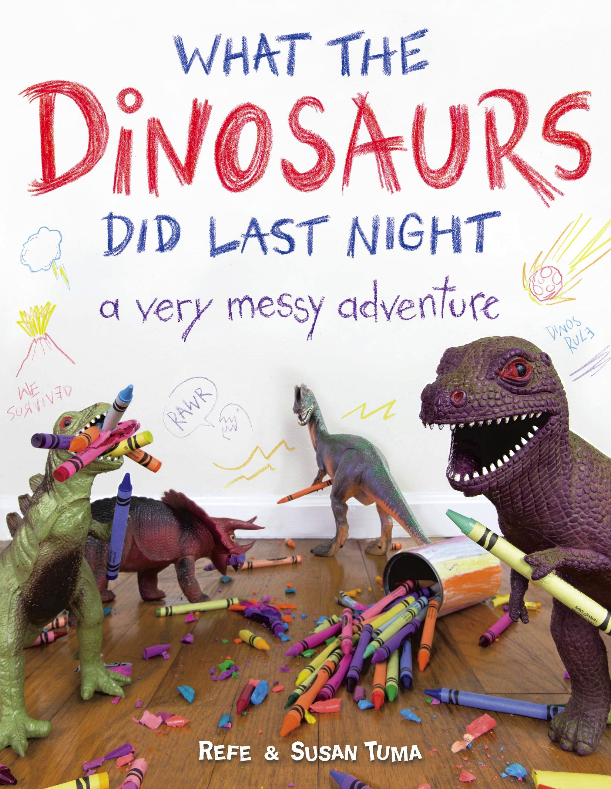 You might have noticed weird things happening in your house. Unexplainable messes. Food all over the kitchen floor. Who could the culprits be? Dinosaurs! Boasting bright and hilarious photographs, Refe and Susan Tuma’s picture book documents a very messy adventure that shows just what the dinosaurs did last night.