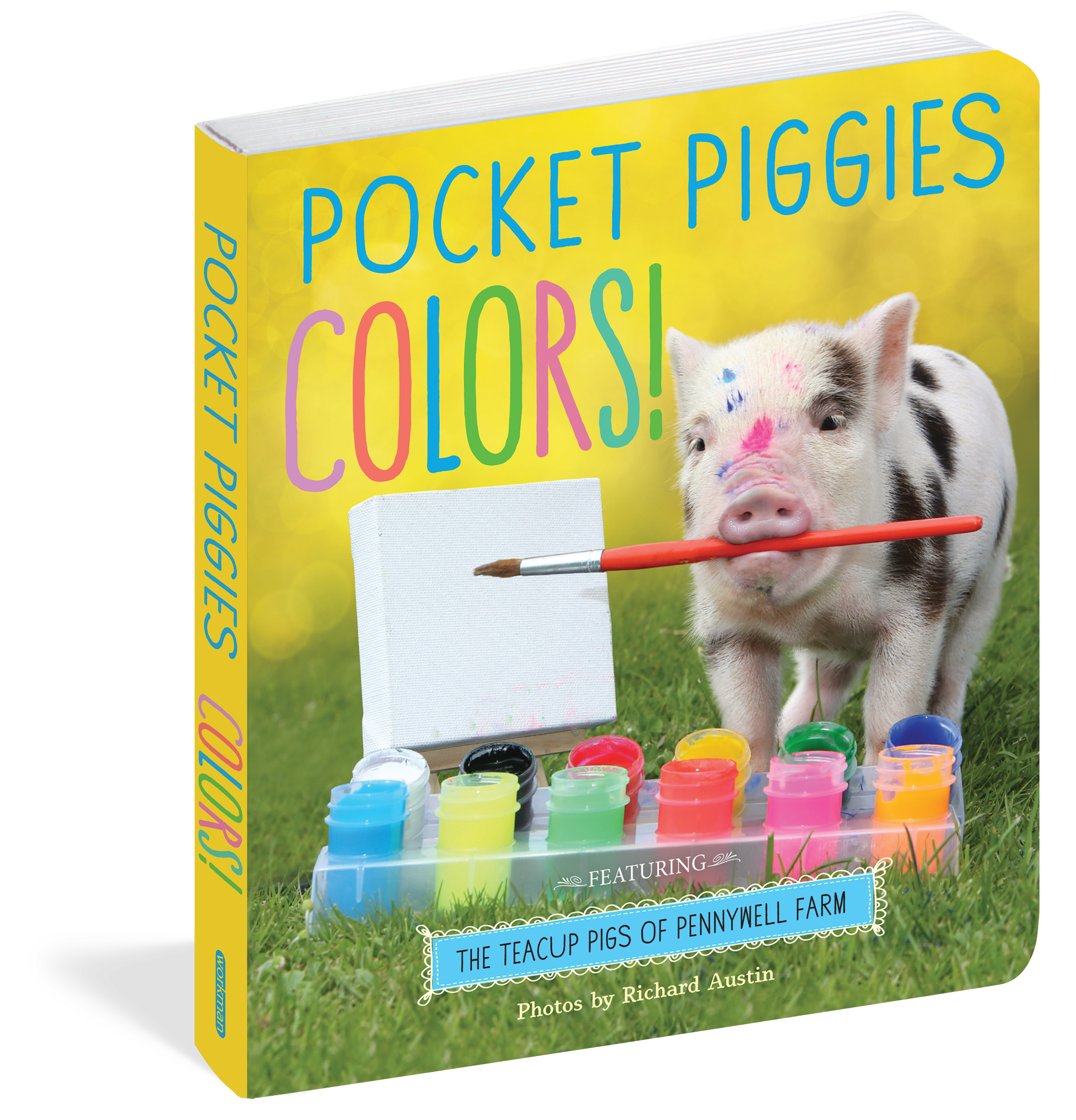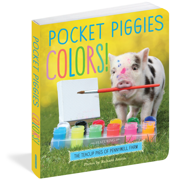 Could there be a cuter way to learn colors and numbers? Announcing a new line of board books featuring the irresistible Teacup Pigs of Pennywell Farm. Small enough to hold in the palm of your hand, the Pennywell pigs are an adorable lot. They’re also naturals in front of the camera—especially the camera belonging to Richard Austin who, as their exclusive photographer, knows just how to capture their big personalities.