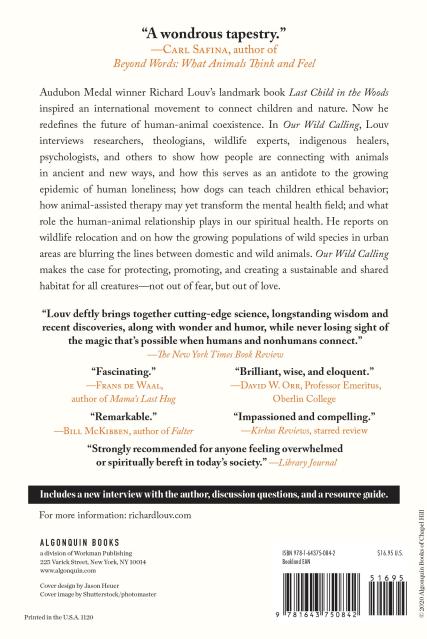 “The timing for Our Wild Calling could not be better. Louv suggests that humans who have strong relationships with animals help their own mental health as well as possibly saving life on earth. This book is incredibly important to our future on this planet.”