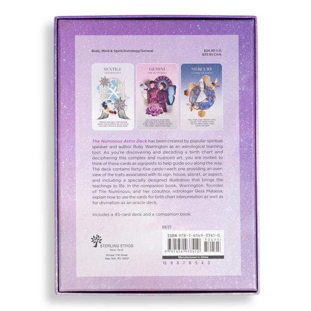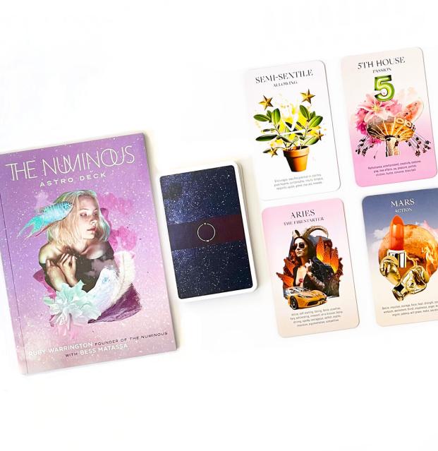 Becoming fluent in the language of astrology can be a life’s work, and The Numinous Astro Deck is a colorful, user-friendly tool for every student. It’s comprised of 45 cards (12 signs, 12 houses, 14 planets, 7 aspects), and each one provides an overview of the traits associated with its sign, house, planet, and more, along with a custom illustration that brings the teachings to life. A companion book features popular spiritual speaker and author Ruby Warrington, founder of The Numinous, explaining how to use the cards to interpret birth charts and as an oracle deck for divination.