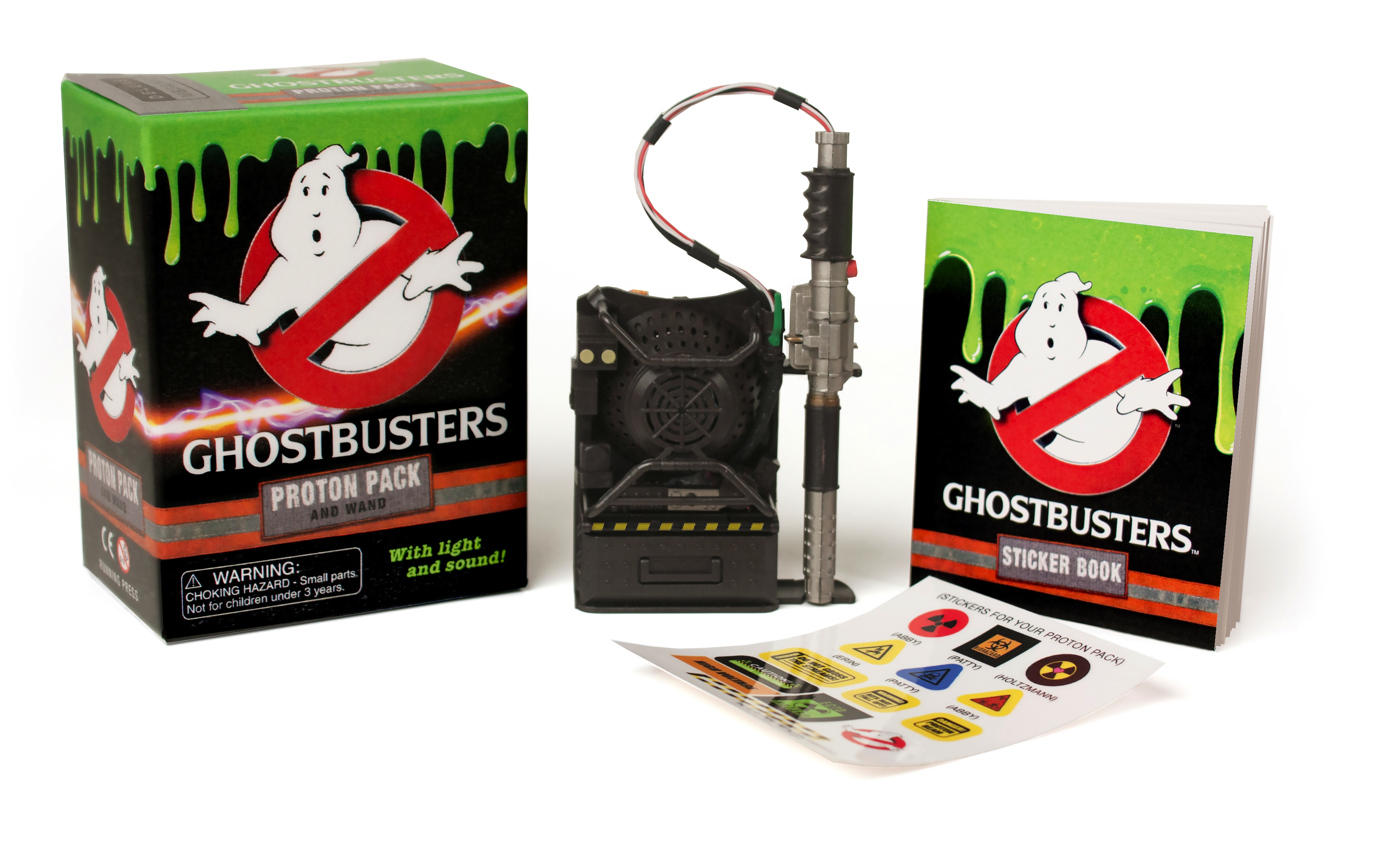 - SPECIFICATIONS: 4” mini proton pack and wand with elastic straps and 13 sticker decals