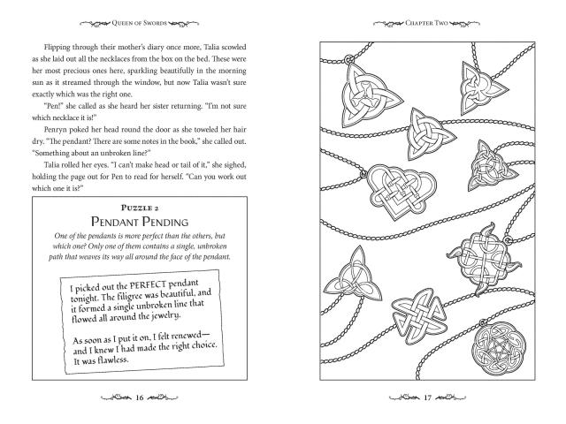 Penryn and her village are preparing to celebrate the equinox on the Night of the Stars … but that night she dreams of the fae Rafrael, and later catches a glimpse of him in his realm across the river that no human can cross. He recognizes her necklace, a gift from her late mother, and soon they are off on an epic journey of love, intrigue, magic, and mayhem, with 30 fantastical illustrated puzzles to solve along the way, involving code-breaking, logic, and creative thinking. Solutions are integrated into the story, with more detailed explanations in the back of the book.