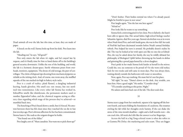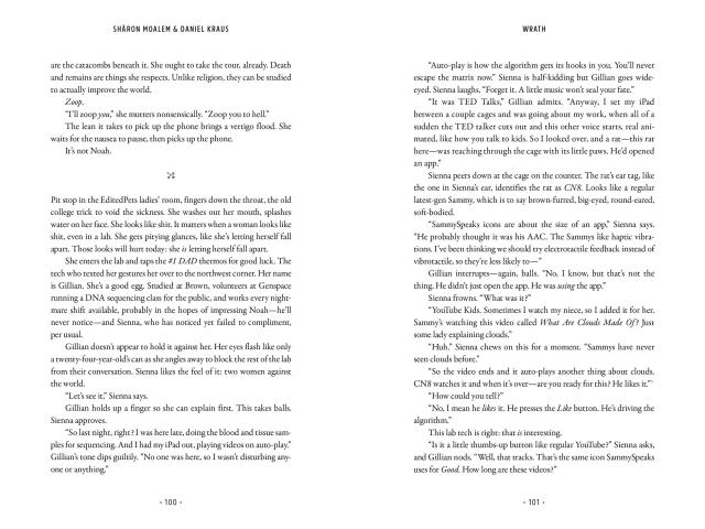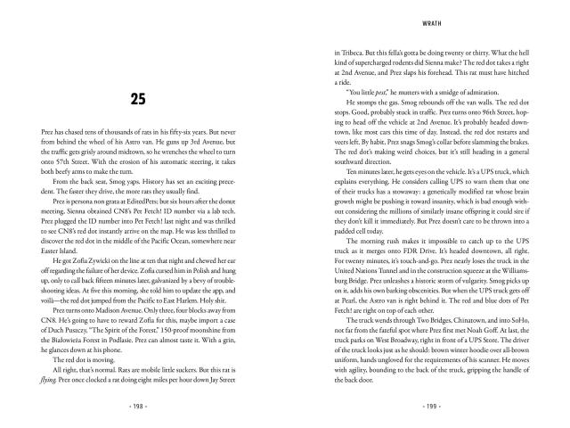 Wrath is the story of a genetically enhanced lab rat whose supersized intelligence helps him to engineer his escape into the world outside the lab: a world vastly ill-equipped to deal with the menace he represents. Modified through advances that have aggravated his aggressiveness, and endowed with a rat’s natural proclivity to procreate regularly, Sammy has the potential to sire a rodent army capable of viciously overwhelming the human race.