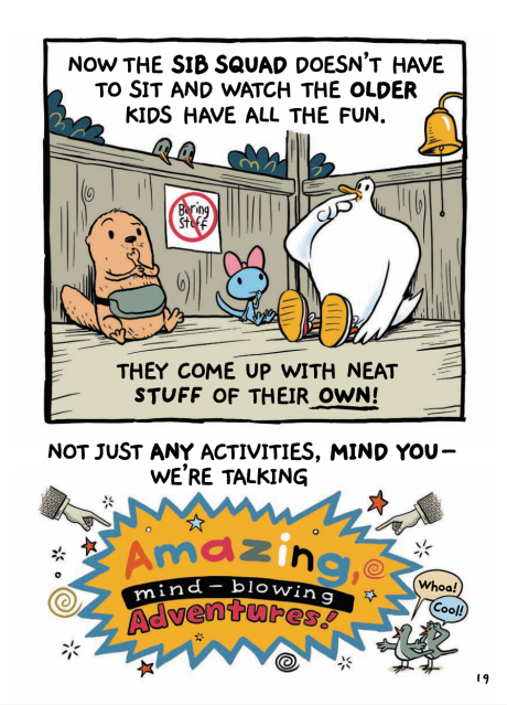 The youngest of seven siblings, Lucy, Bruce, and Oliver are sick and tired of being told that they are too little to do the things their older siblings do. In a bout of bored frustration, they band together to form Sib Squad—a club of their own dedicated to having “amazing, mind-blowing adventures.” And adventures they have! Award-winning cartoonist Steve Breen crafts a riotously fun look at sibling dynamics that will be beloved by downtrodden younger siblings everywhere.