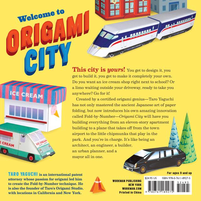 Created by certified origami genius, Taro Yaguchi––who has not only mastered the ancient Japanese art of paper folding, but now introduces his own innovation called Fold-by-Number––Origami City will have you building every part of a paper-folded city: an eleven-story apartment building, a town airport complete with a plane, cars, a train, an ice cream truck, trees, cats, dogs, a rabbit, and even little chipmunks that play in the park. And you’re in charge. It’s like being an architect, an engineer, a builder, an urban planner, and a mayor all in one.