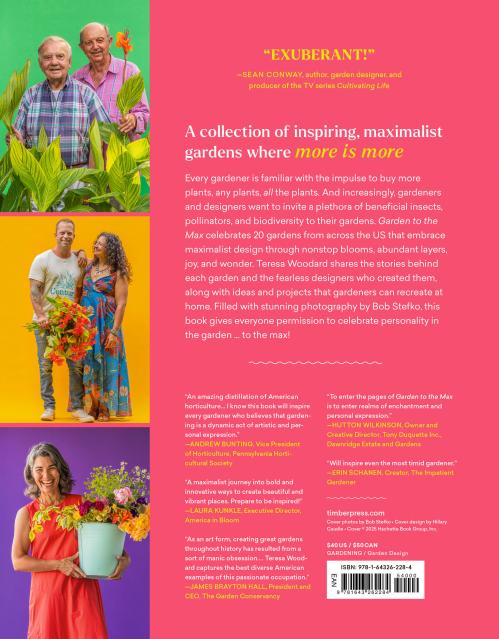 “Gardens are as much about the people who create them as the plants that grow in them and the concepts behind them. Teresa Woodard expertly captures all of it in Garden to the Max, a book that celebrates exuberance and no-holds-barred gardening in a way that will inspire even the most timid gardener. And, the stories of 20 creative and joyful gardens and their gardeners are brought to life through Bob Stefko’s stunning photography.”Erin Schanen, Creator and Head Plant Lover, The Impatient Gardener