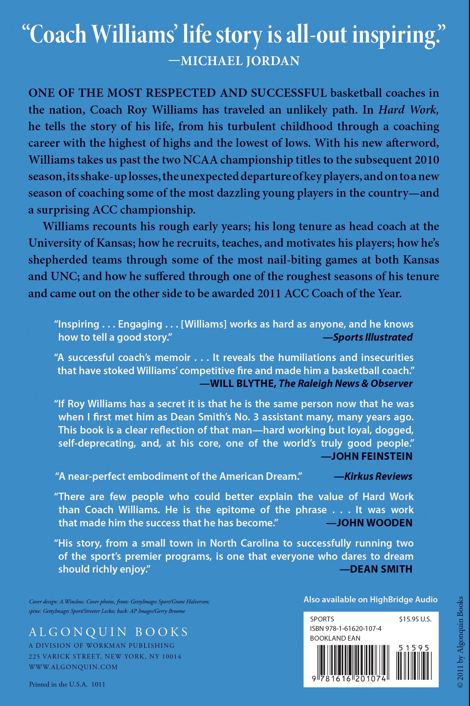 “Hard Work is a successful coach’s memoir not because it provides a blueprint for success but because it reveals the humiliations and insecurities that have stoked Williams’ competitive fire.” —Will Blythe, The Raleigh News and Observer