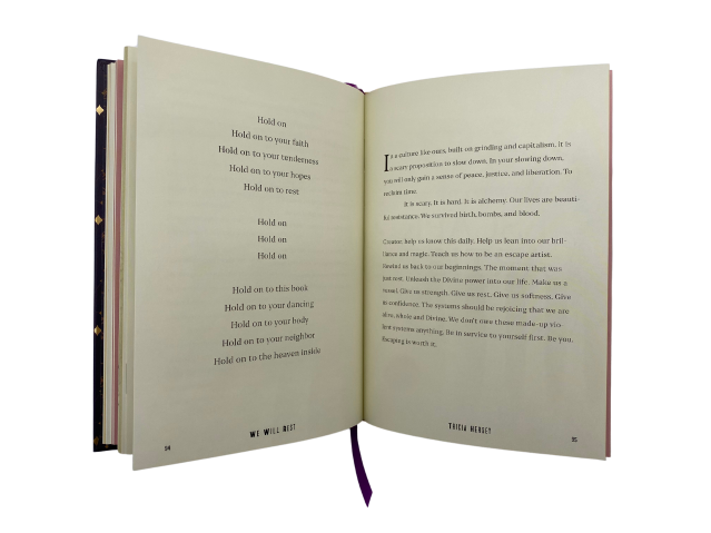 Give the gift of rest and escape with this exquisitely designed volume of inspiring writings by Tricia Hersey, powerfully illustrated by award-winning designer George McCalman and featuring a silk ribbon marker.