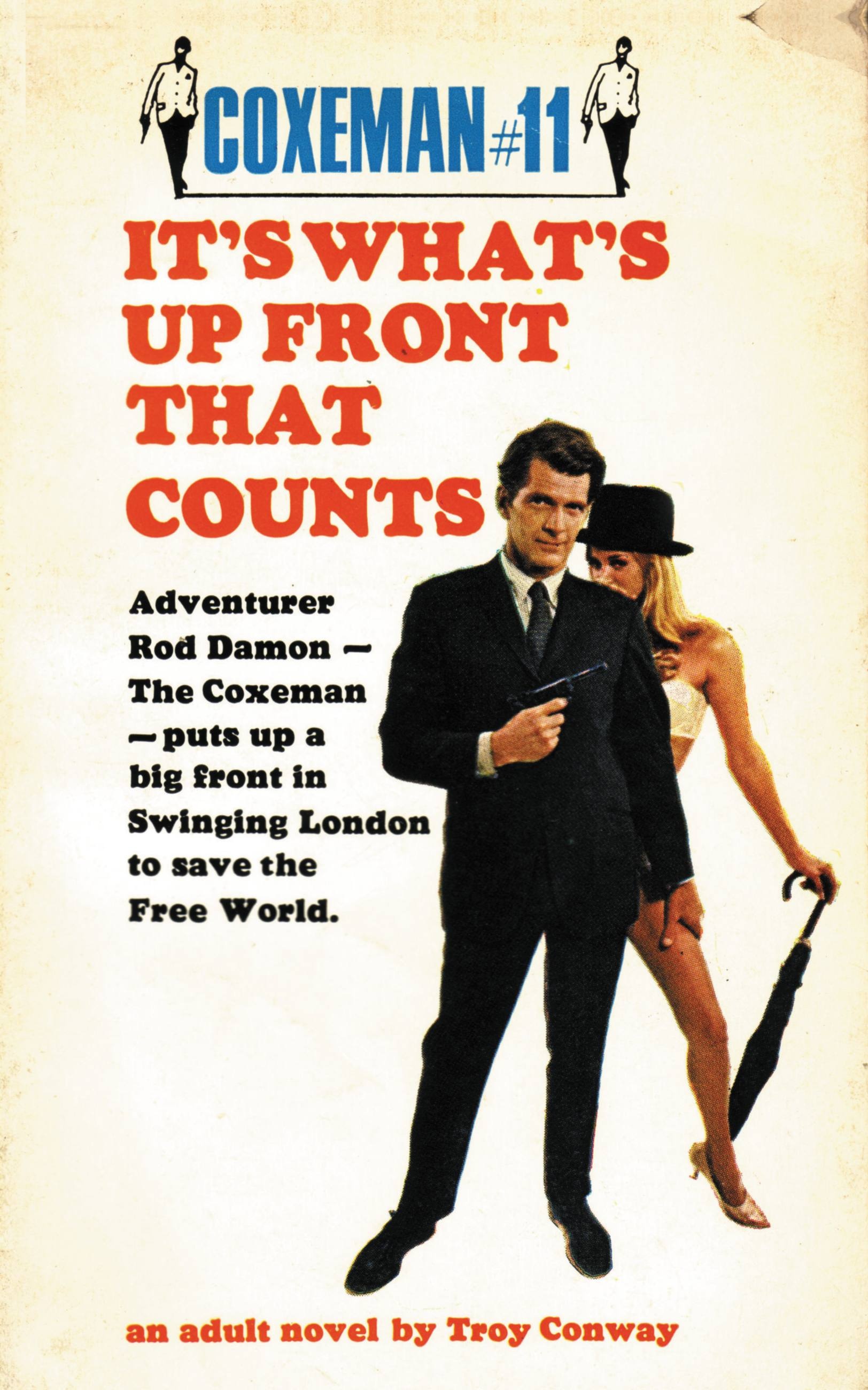 So Rod arranges a friendly little love-in to get a rise out of the old boy. Why was Rod so good to him? For the very best reasons: Lord Brice-Benington was the key to stop a potential menace to the Free World’s security – a scandal like the Profumo affair that could unseat the British Government and give our enemies the secret plans to a weapon more deadly than the H-Bomb. Mod London, blackmail, drugs and some of the farthest-out sex ever – that’s the background for The Coxeman’s latest nonstop adventure.