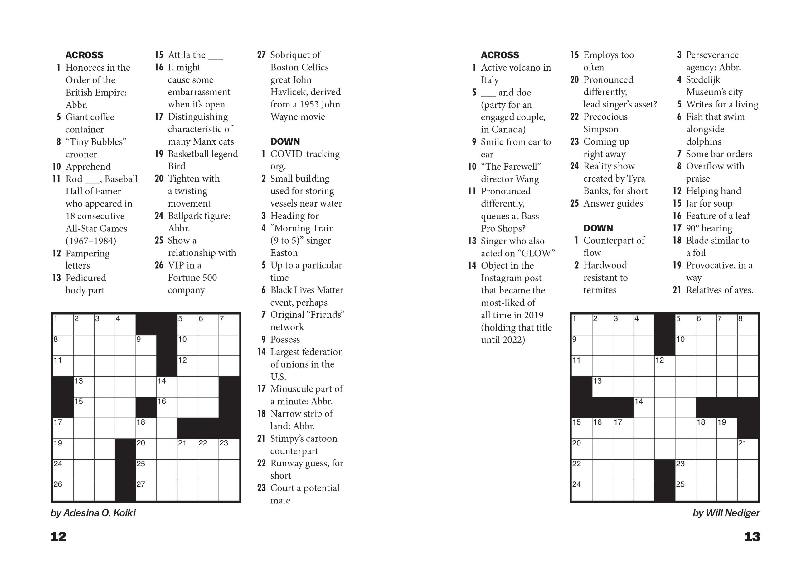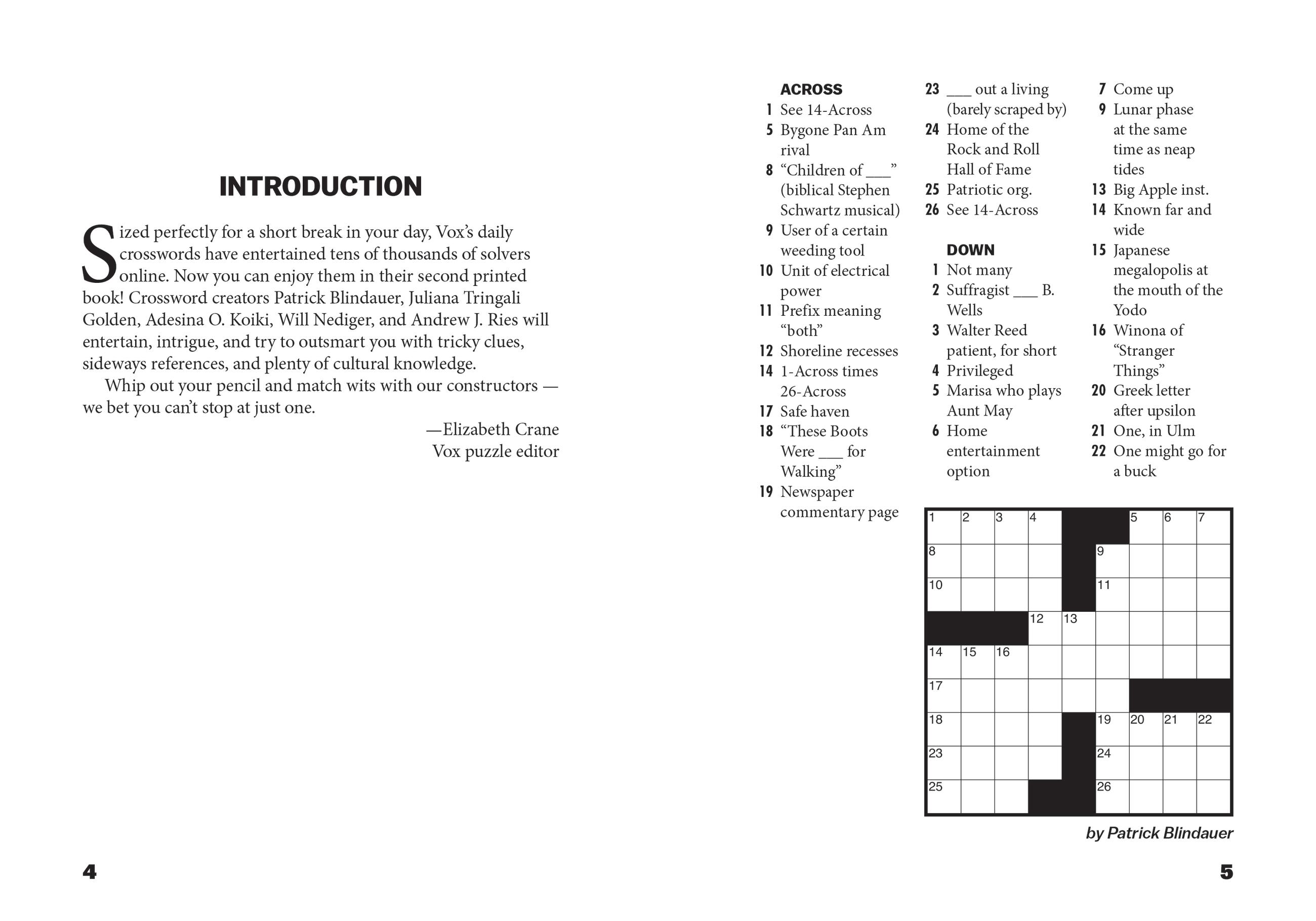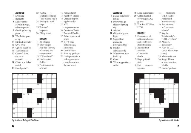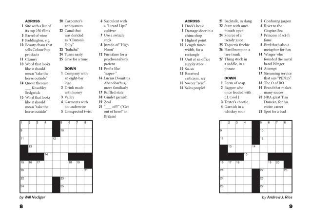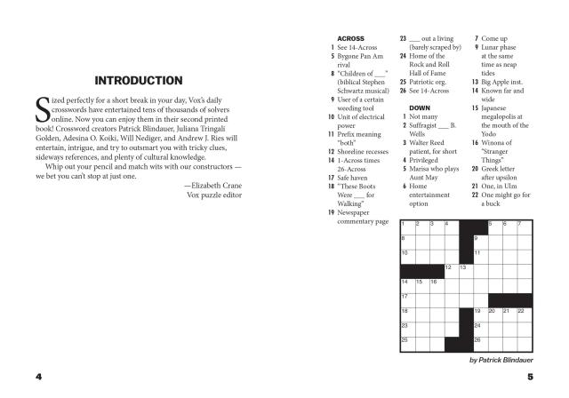 You’ll be amazed at how much entertainment fits inside this tiny little package! These 9×9 crosswords featuring mini themes and current pop culture references are friendly and accessible to casual solvers, while offering some unexpected twists for experts, thanks to Vox.com’s all-star crew of crossword constructors: Patrick Blindauer, Juliana Tringali Golden, Adesina Koiki, Will Nediger, and Andrew J. Ries.