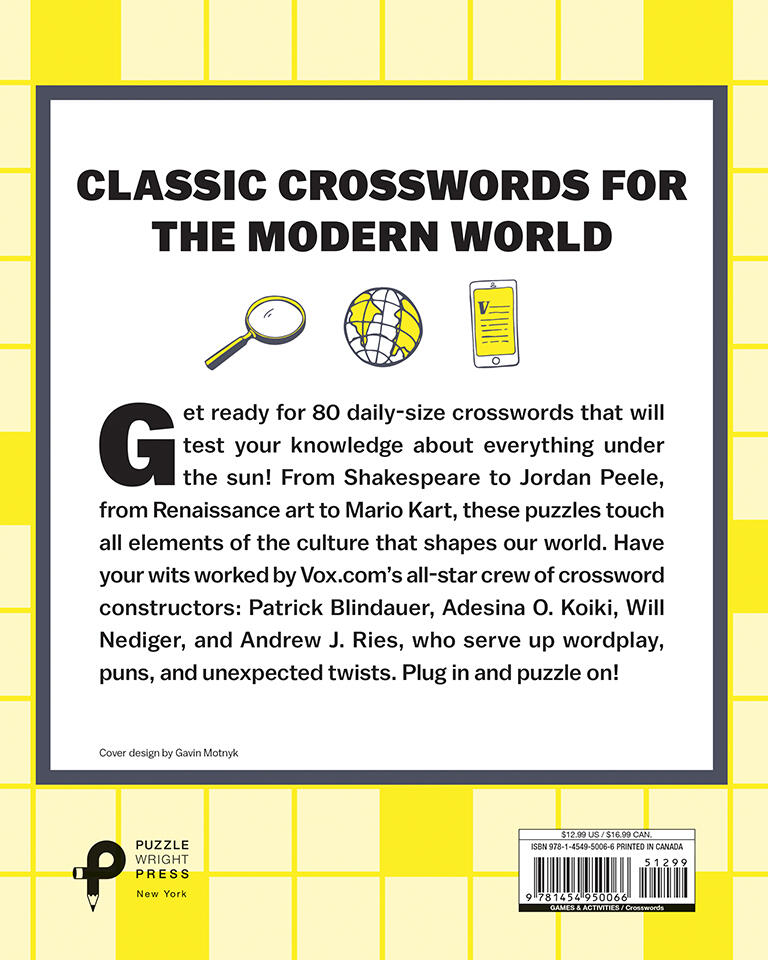 Vox.com, the ultimate destination to find free crossword puzzles online, is now the powerful puzzle partner to Puzzlewright Press! With this Vox crossword book and Vox Mega Book of Mini Crosswords, this power puzzler couple have unlocked a world of wordplay and knowledge. Vox.com’s all-star crew of crossword constructors—all of whom have published multiple puzzles in The New York Times and other high-profile venues—include Patrick Blindauer, Juliana Tringali Golden, Adesina O. Koiki, Will Nediger, and Andrew J. Ries.