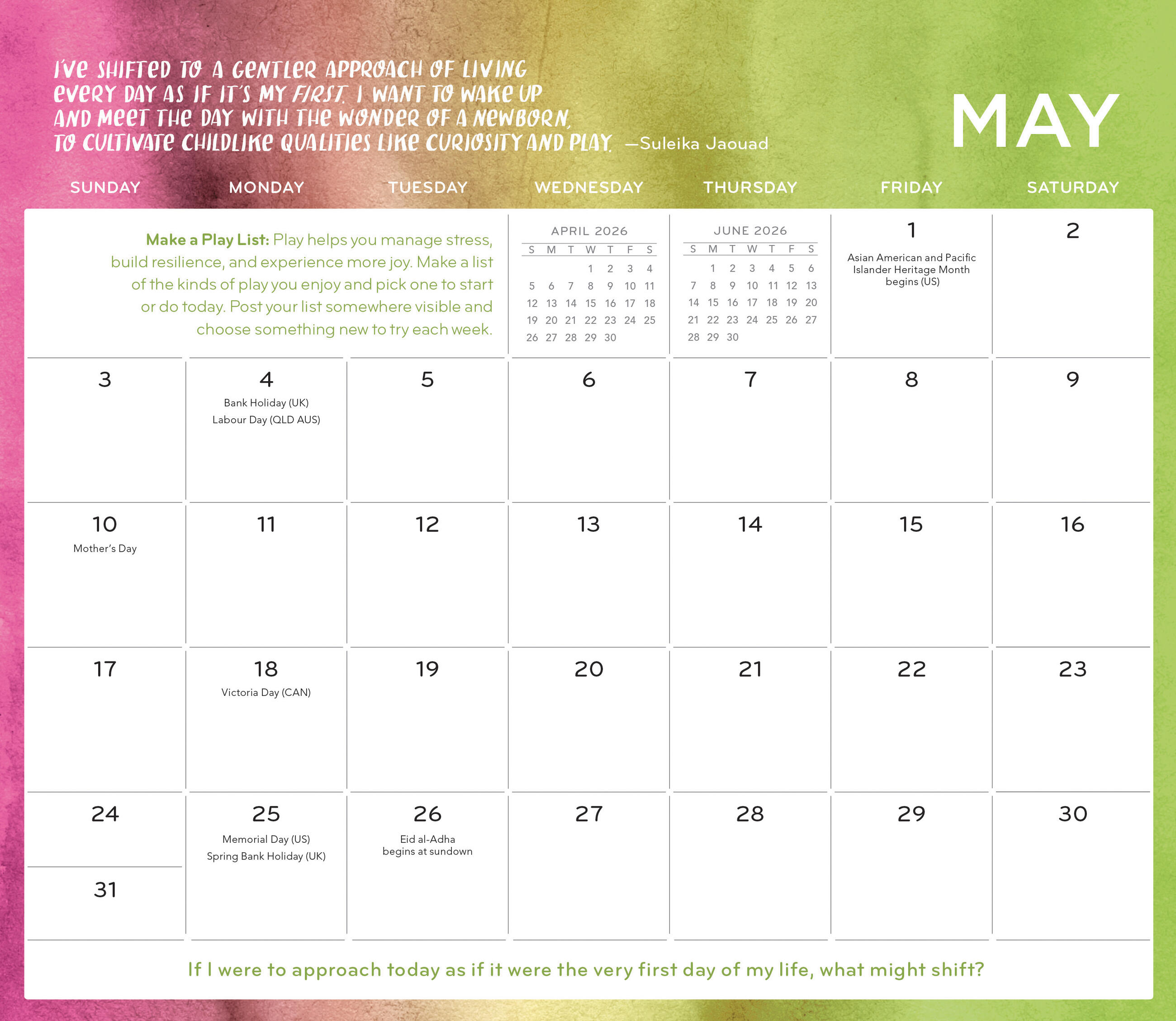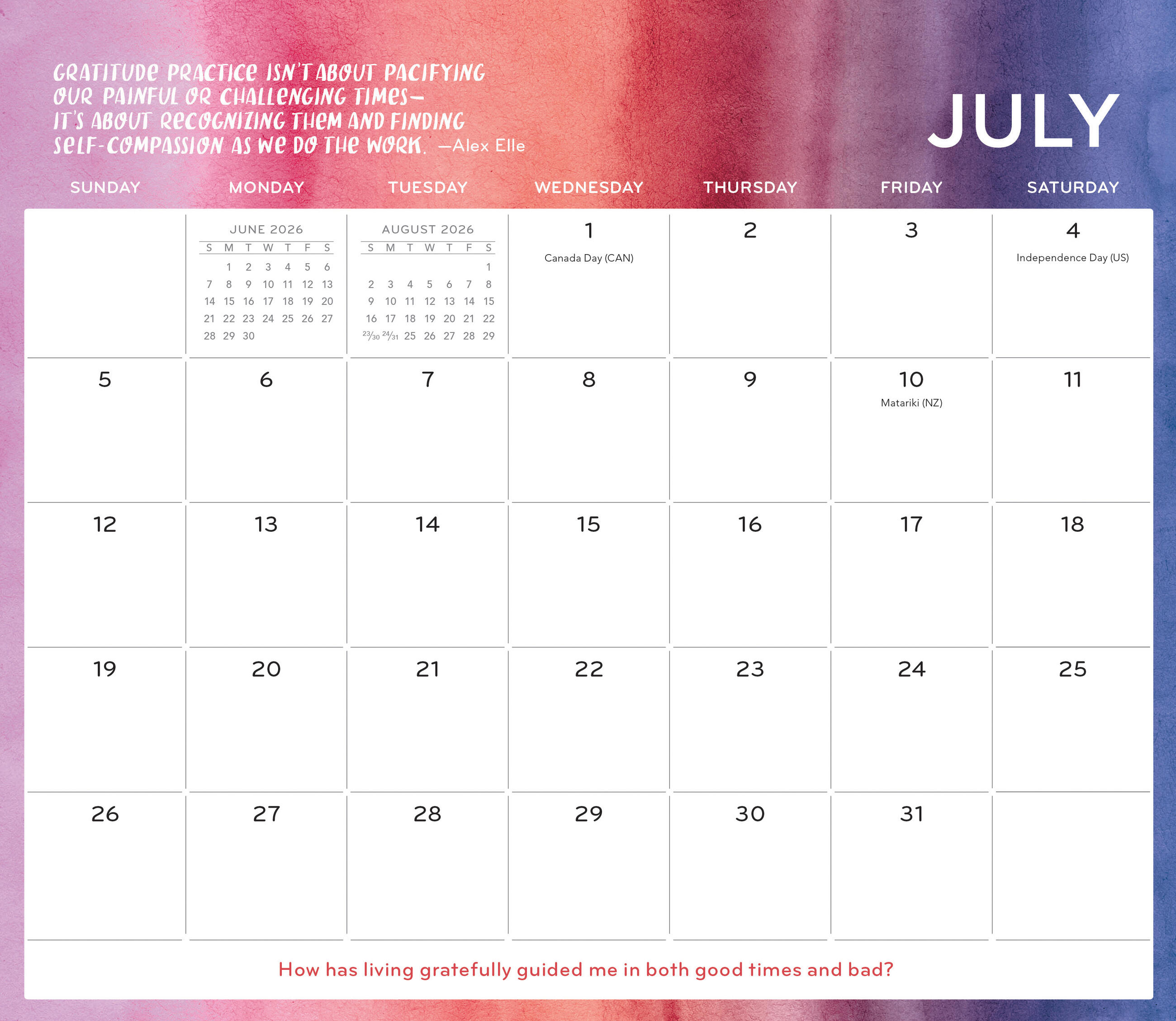 - INSPIRATIONAL WORDS: Each month includes uplifting quotes and thoughtful prompts to inspire reflection and mindfulness, like What seeds of hope am I actively planting and tending?