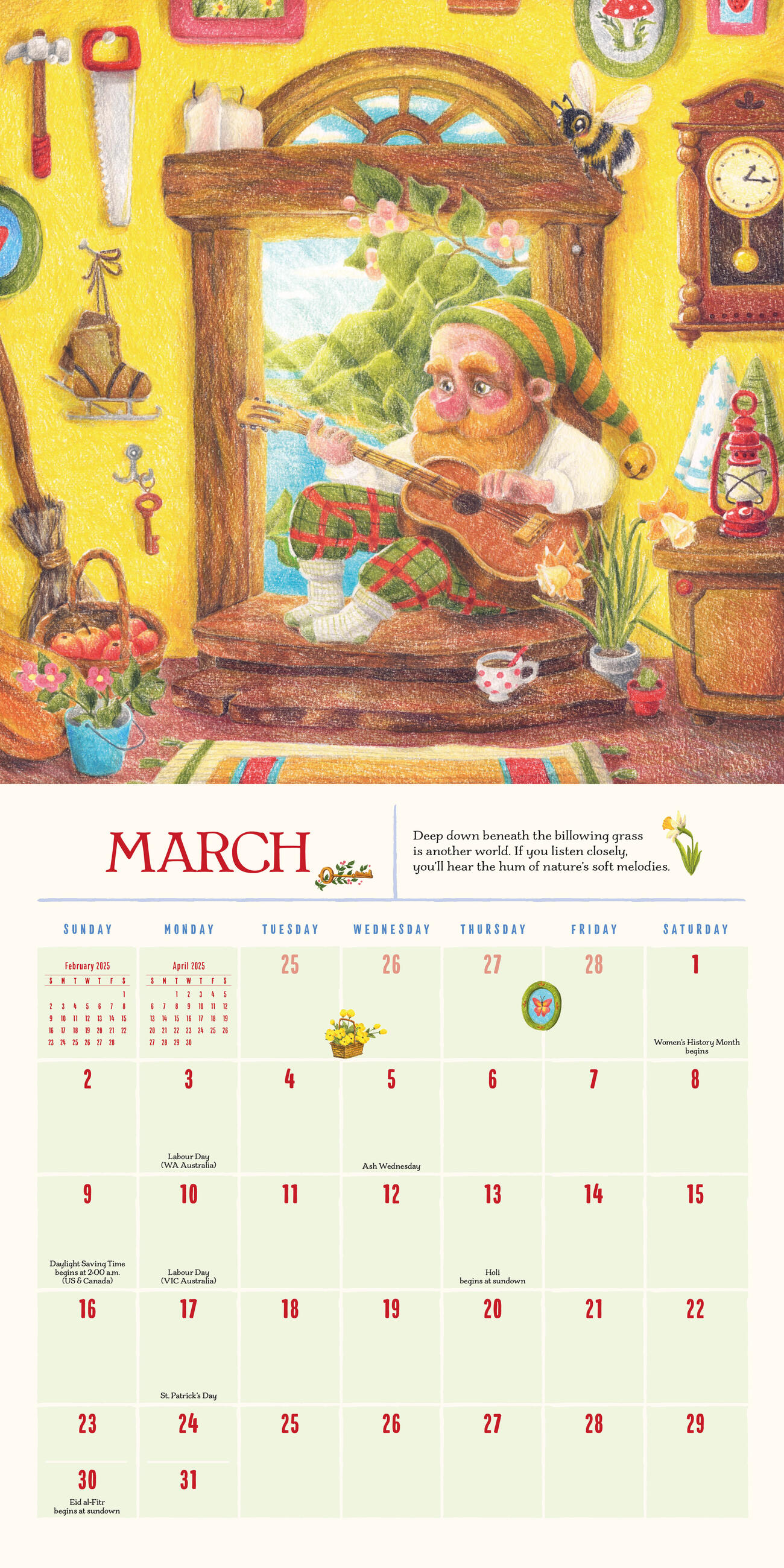 - GORGEOUS ARTWORK: Irresistible nostalgic yet vibrantly fresh, Martha May’s lovely illustrations brighten each month with adorable gnomes in fun scenes.