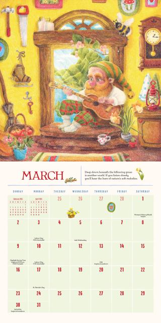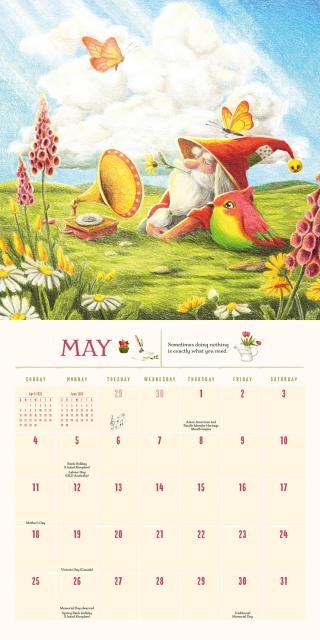 - GNOME SWEET GNOME: A tiny crew of gnomes will brighten each month with woodland animals, mushrooms, and wildflowers, bringing tidbits of gnome wisdom: Sometimes doing nothing is exactly what you need.