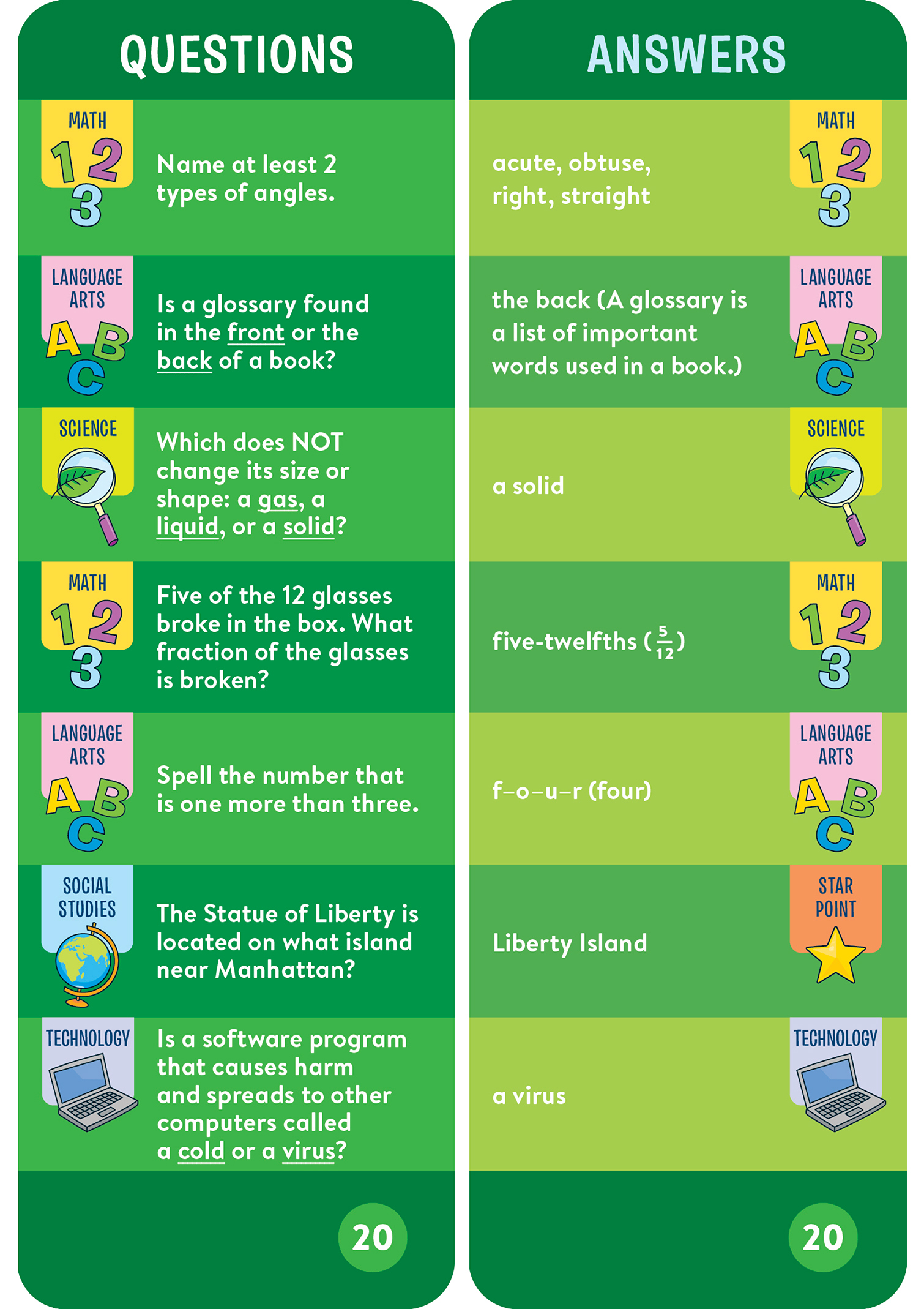 - 1,000 questions and answers covering math, language arts, science, and more