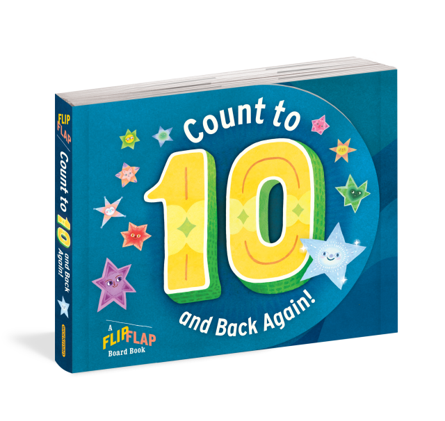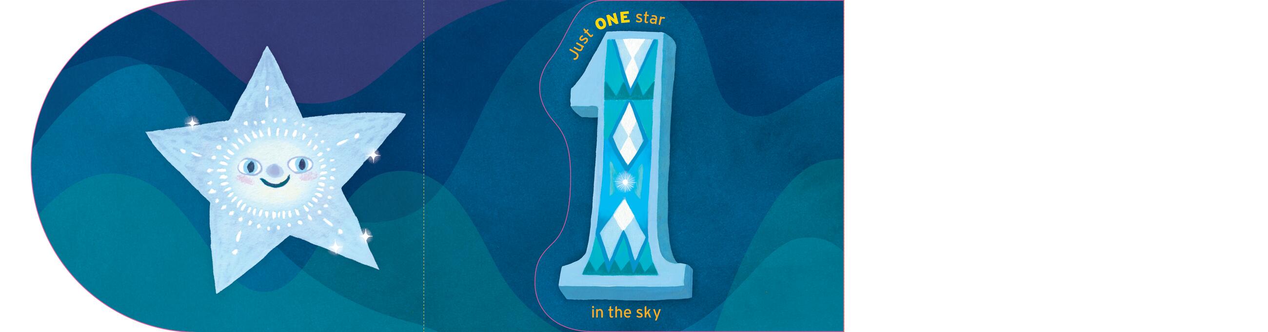 This board book has two spines—one on each side—so that the book opens outward left and right. Plus, each page is shaped like a number from 1 to 10! As new stars appear in the darkening night sky, count them along with the rhyming text: