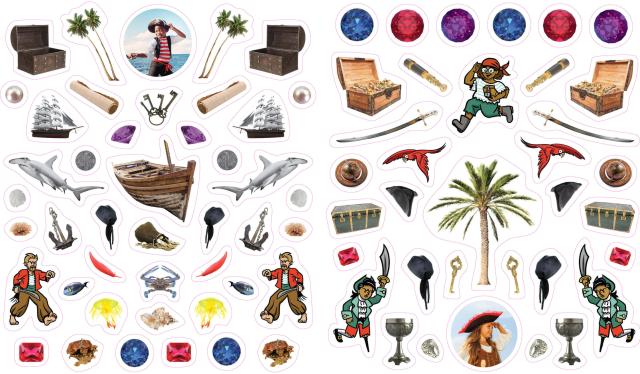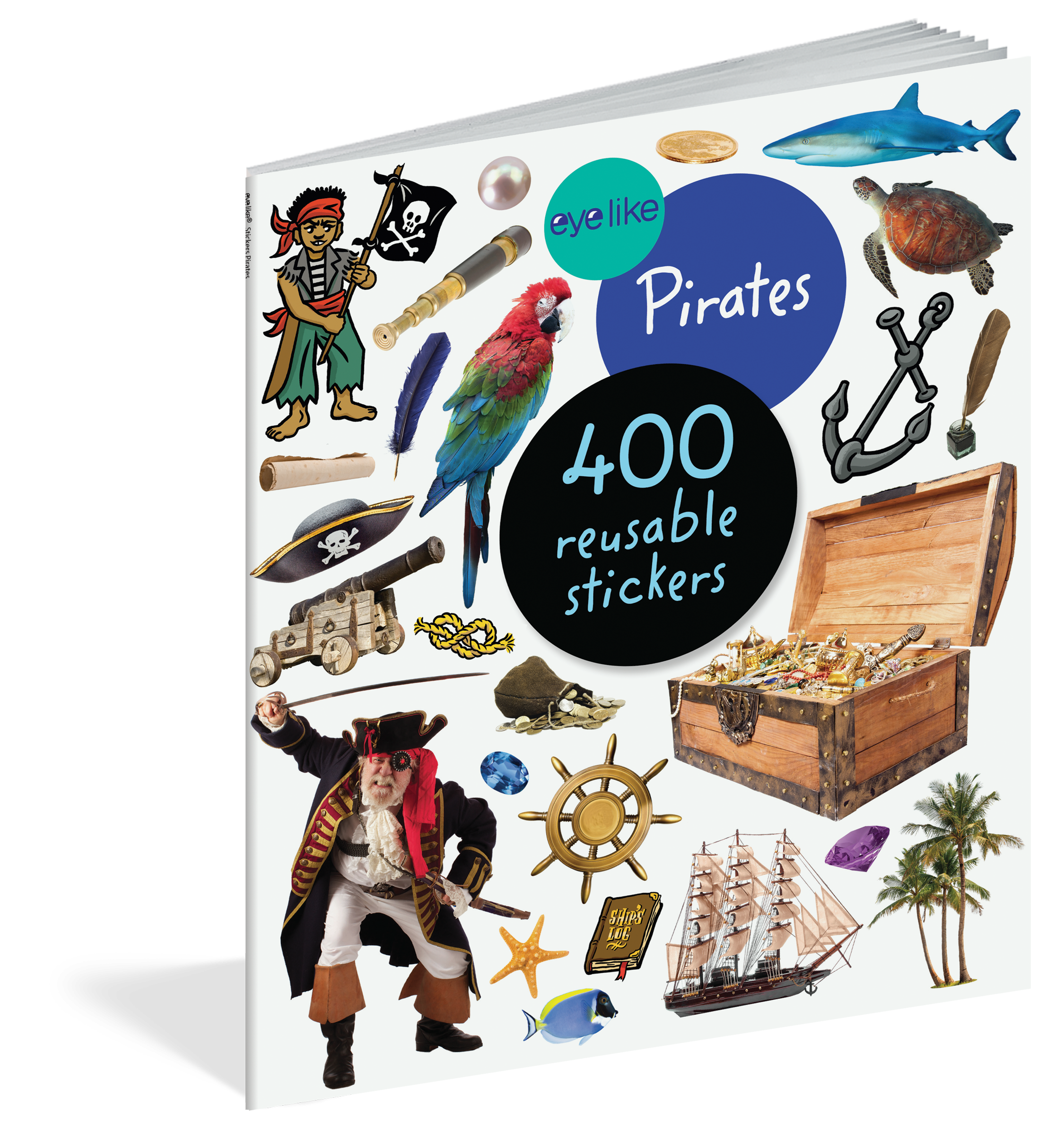 Whether on windows, notebooks, lunch boxes, or scrapbooks, these peel-and-place stickers are perfect for creating your own work of art anytime, anywhere, and are designed to be stuck on, peeled off, and stuck on again without tearing or losing their “stick.” The books’ inside covers are glossy illustrated backgrounds on which kids can create lively and original sticker scenes―and then change them whenever they like. Eyelike Stickers: Pirates will spruce up any surface with all things pirates!
