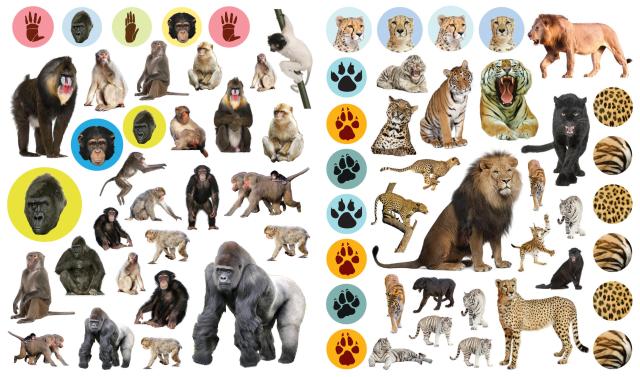 The full-color photographic stickers feature a variety of animals, including nimble fox, majestic lions, gorillas, bears, wolves, owls, zebras, bison, and more! Whether on windows, notebooks, lunch boxes, or scrapbooks, these peel-and-place stickers are perfect for creating your own work of art anytime, anywhere, and are designed to be stuck on, peeled off, and stuck on again without tearing or losing their “stick.” The books’ inside covers are glossy illustrated backgrounds on which kids can create lively and original sticker scenes―and then change them whenever they like.
