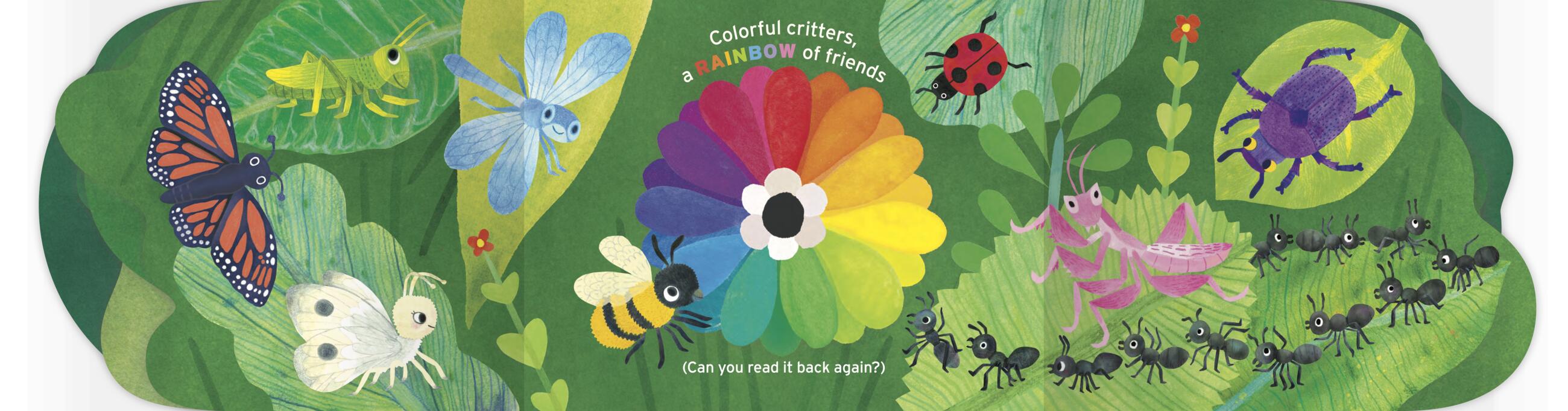 As the story goes on, kids learn their colors and are rewarded with a rainbow of bugs at the back of the book.