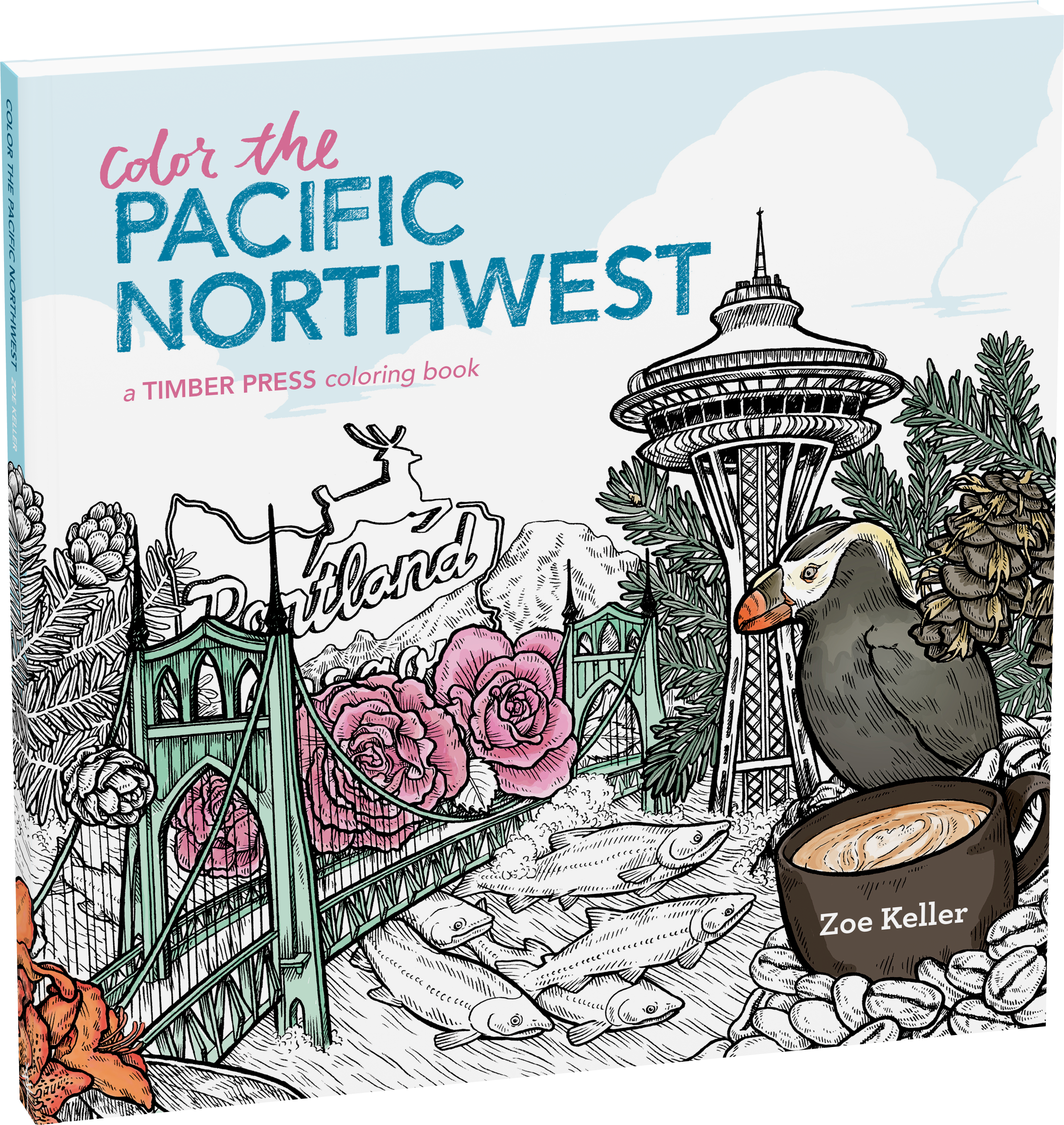 “Portlander Zoe Keller’s Pacific Northwest-themed coloring book will help you reimagine your favorite icons from all corners of Cascadia, in the colors of your choice.” I>Portland MonthlySan Diego Family